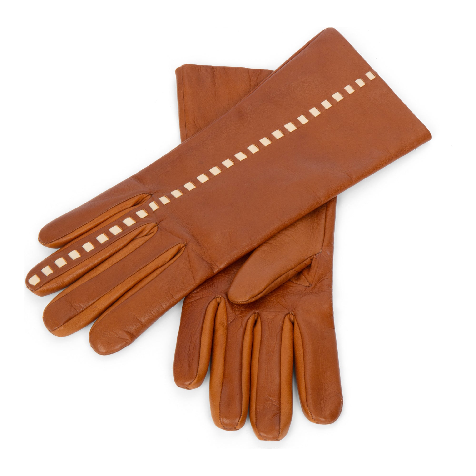Luxury Brown Ladies Inseam Gloves with Lace Point