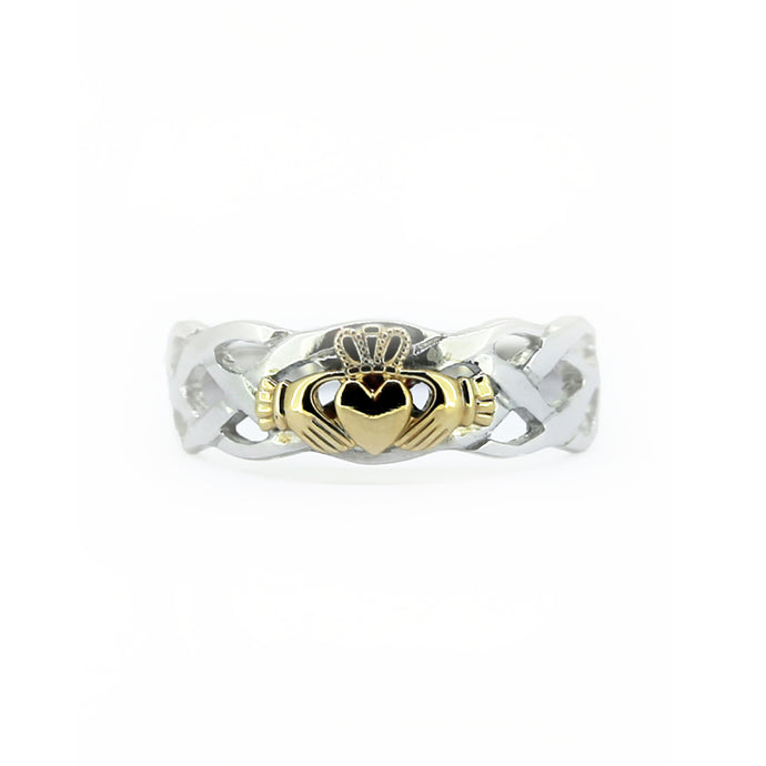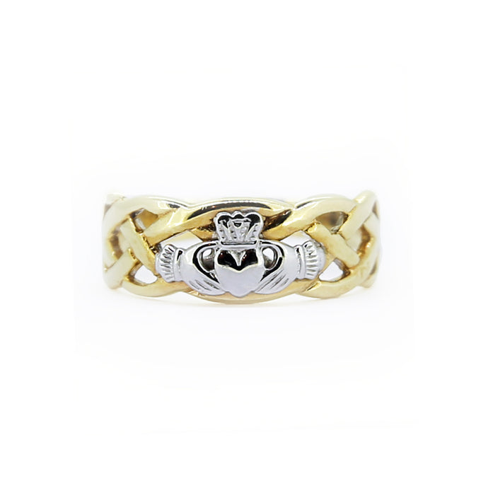 Claddagh Two Tone Woven Ring, Yellow Gold