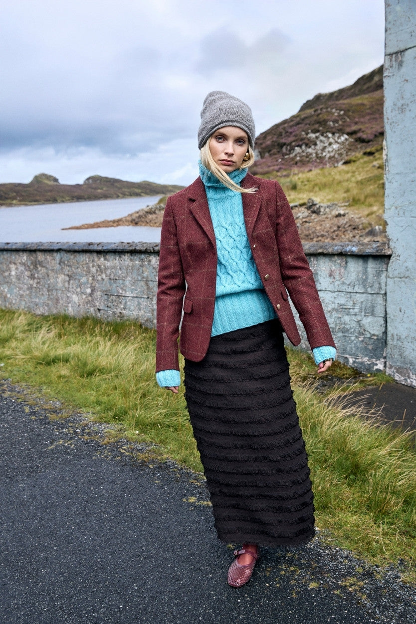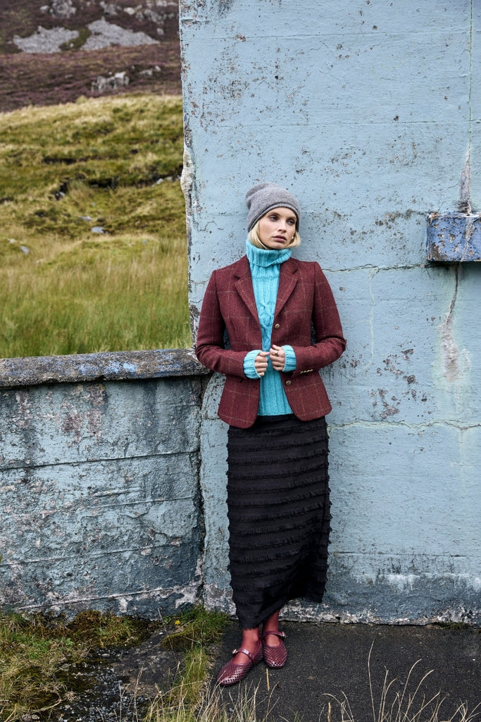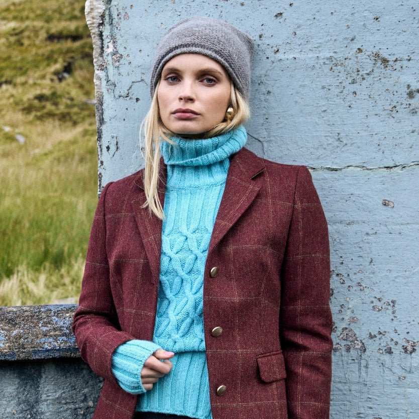 Fisherman Out Of Ireland's aqua blue cable and ribbed polo neck sweater will quickly become one of your winter wardrobe staples.