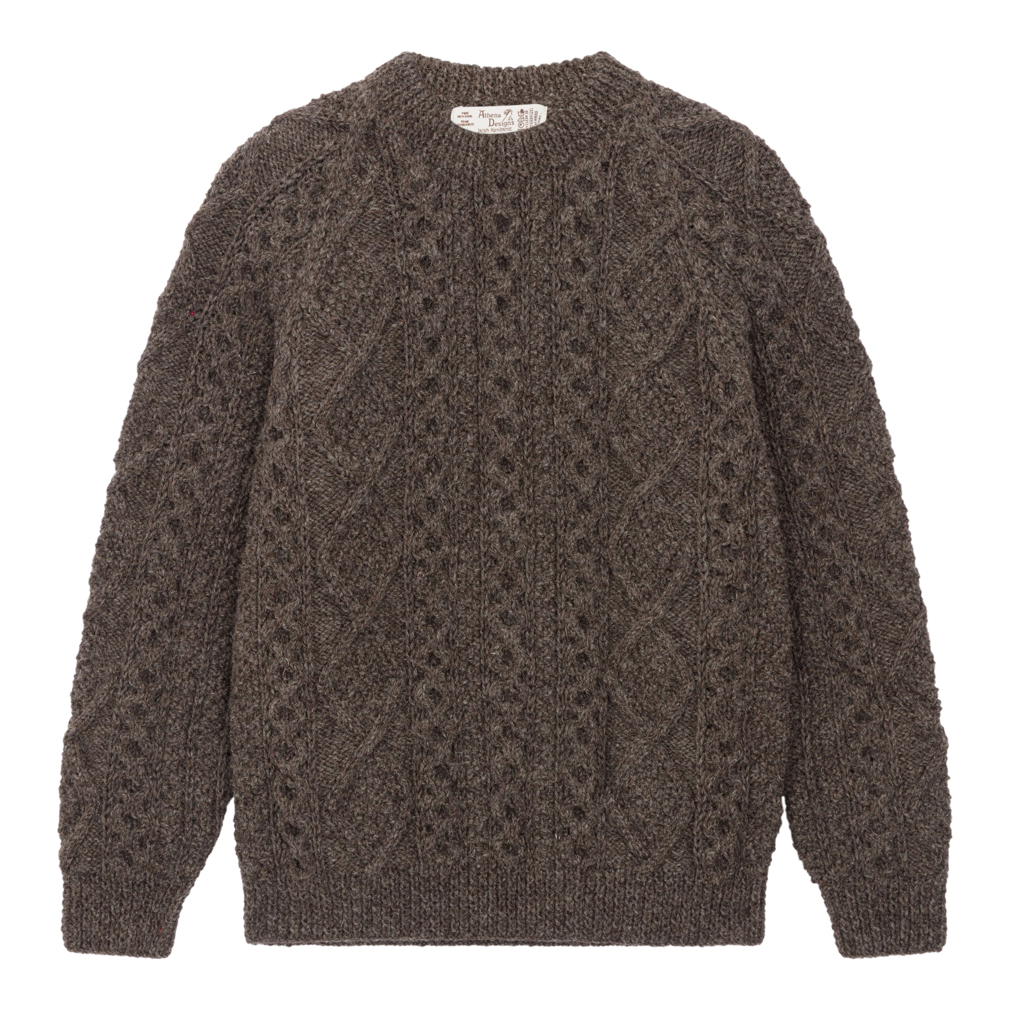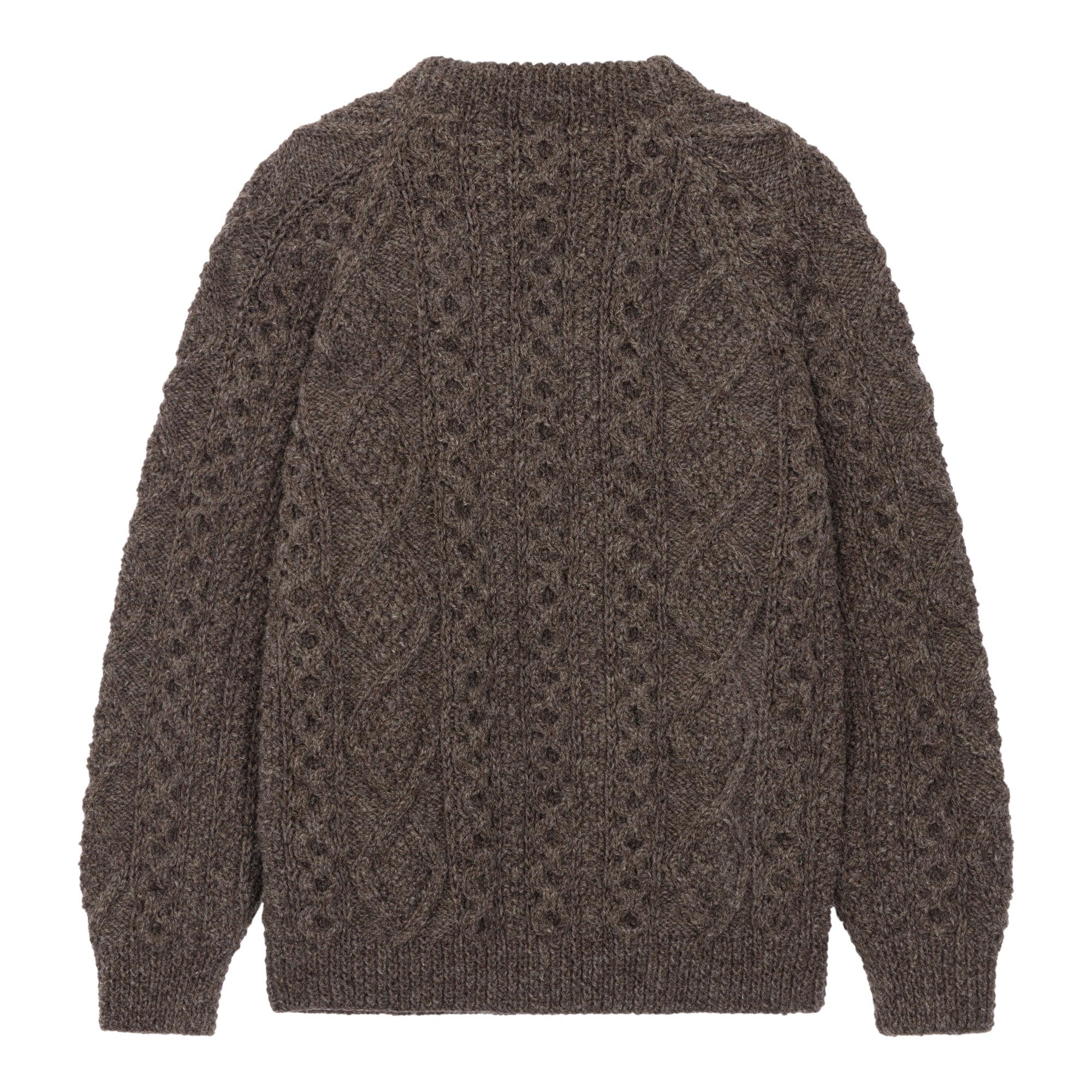 Brown Unisex Hand Knit Crew Neck Aran Sweater