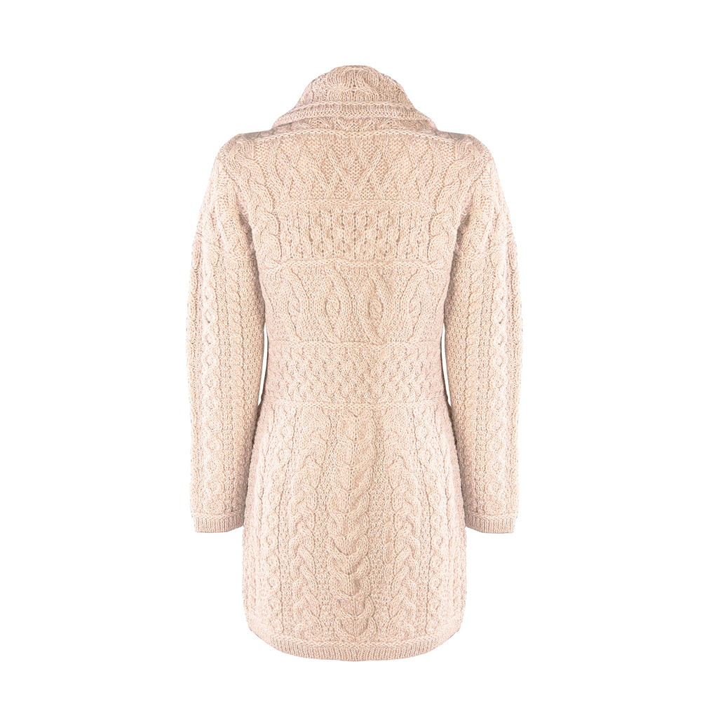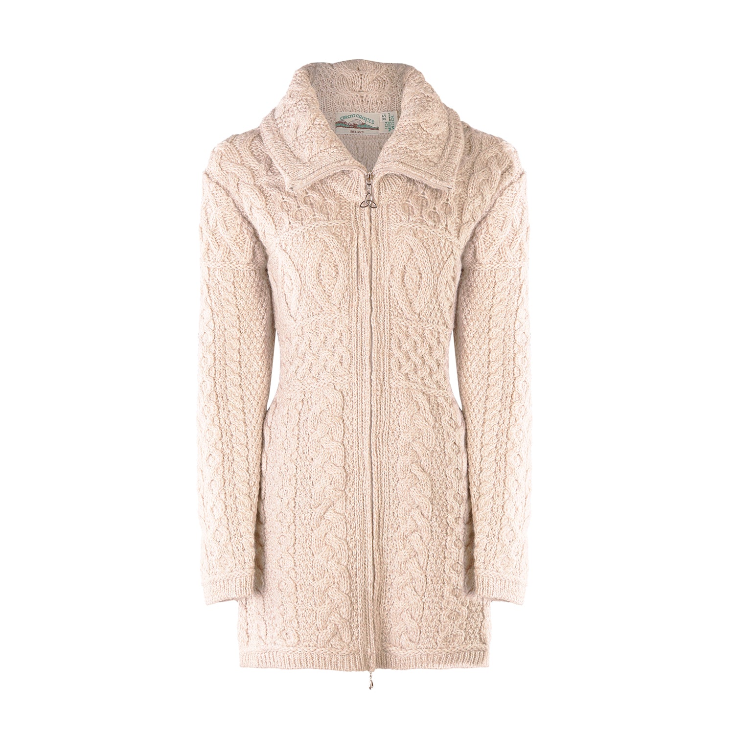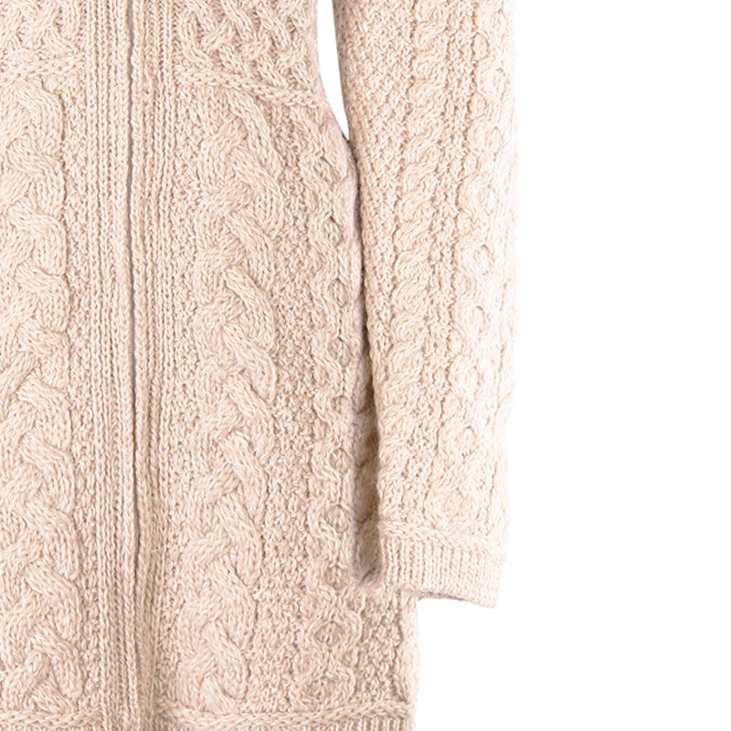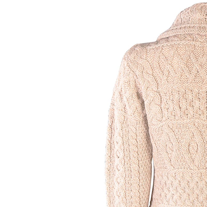 Direct from Ireland, this long waisted cardigan has been has been designed in a modern contemporary way that still draws inspiration from the traditional aran cardigan.