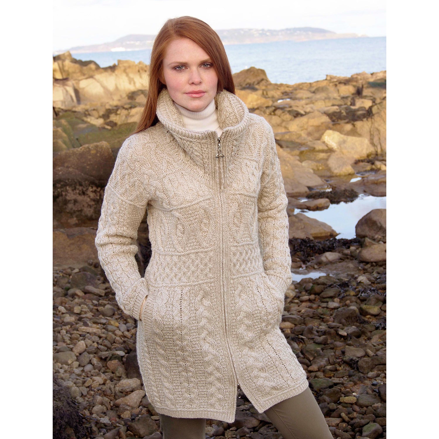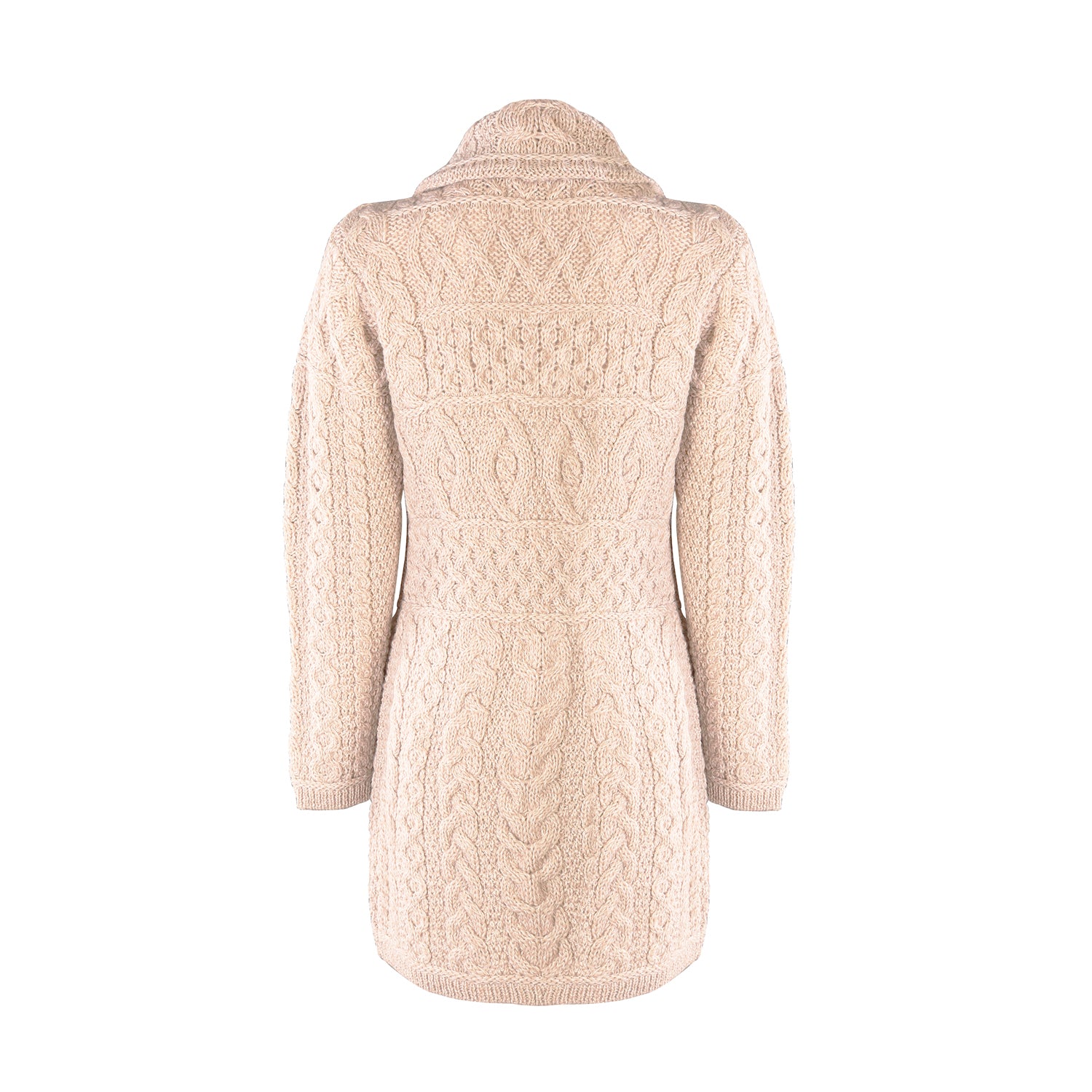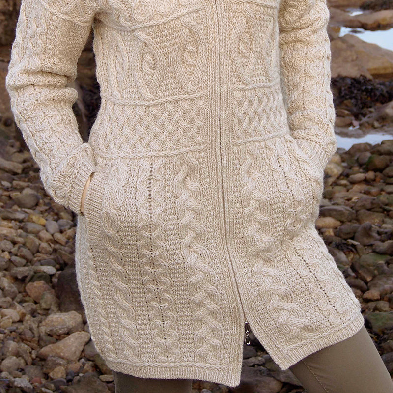 Direct from Ireland, this long waisted cardigan has been has been designed in a modern contemporary way that still draws inspiration from the traditional aran cardigan.