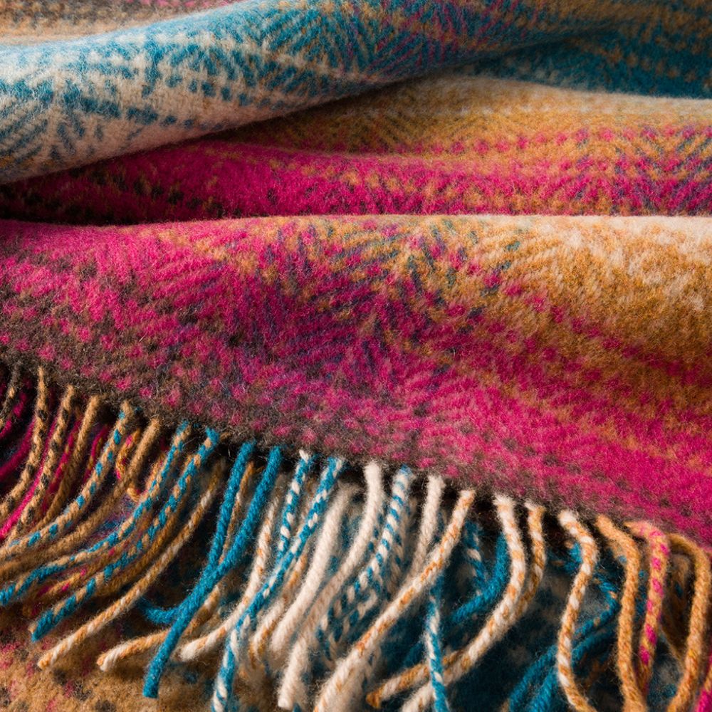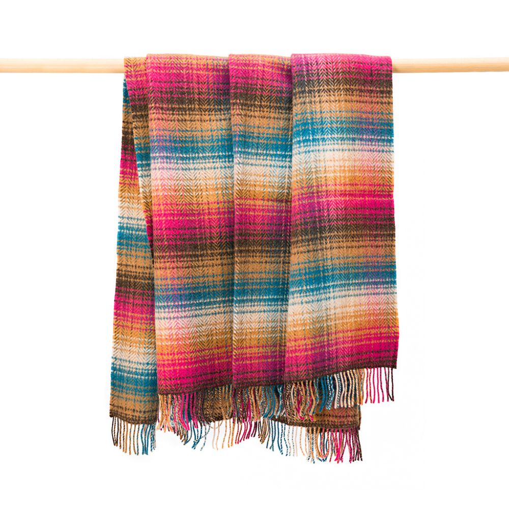 Indulge in the sublime comfort of our Pink & Teal Check Merino & Cashmere Blanket.