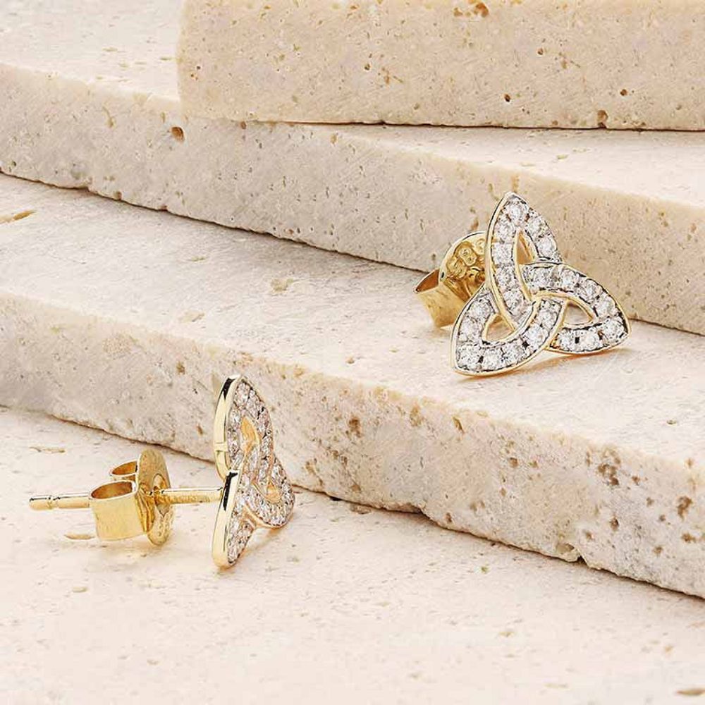 14K Lab Diamond Encrusted Trinity Knot Earrings