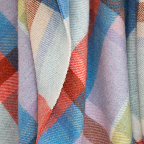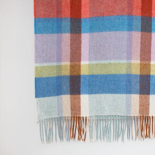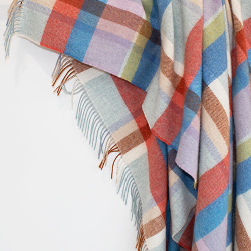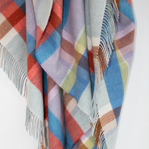 The blues, reds and lilacs running through this wool blanket combine together to create a stunning Spring palette.