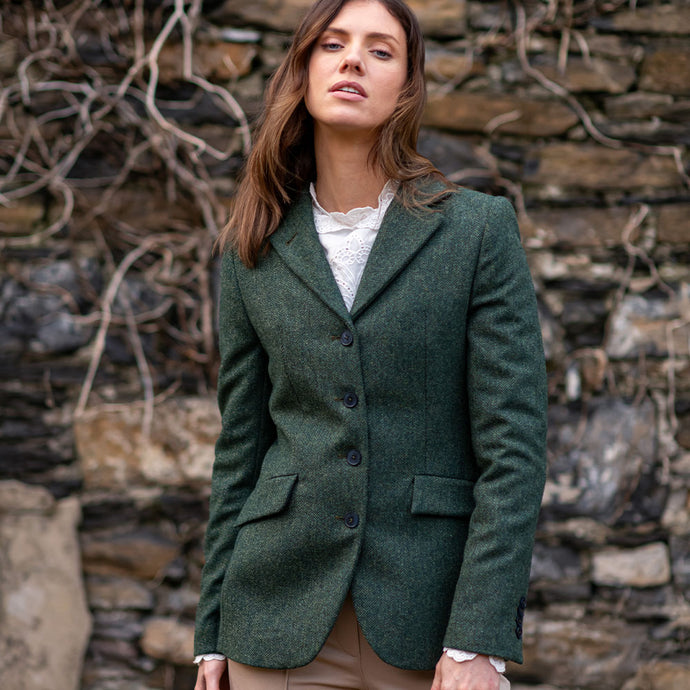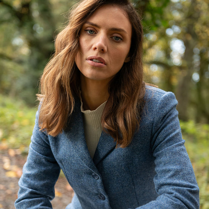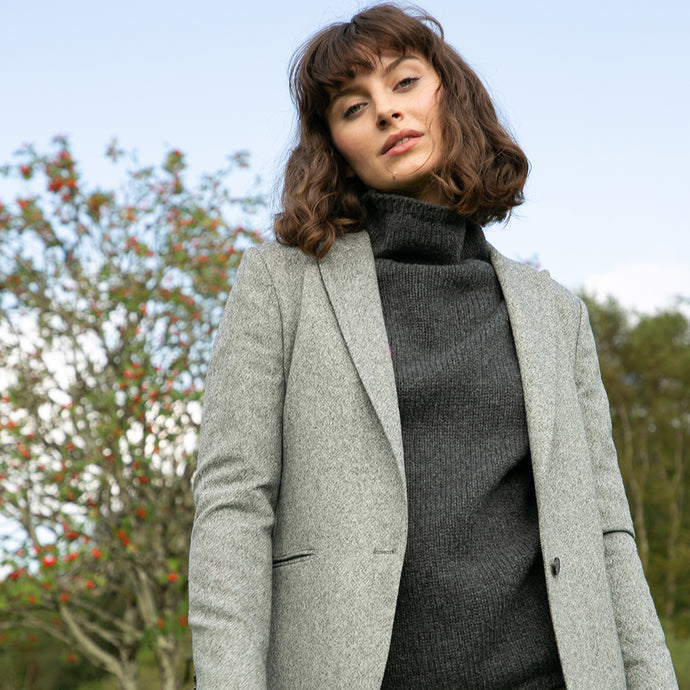 Grey Herringbone Clodagh Double Breasted Tweed Jacket