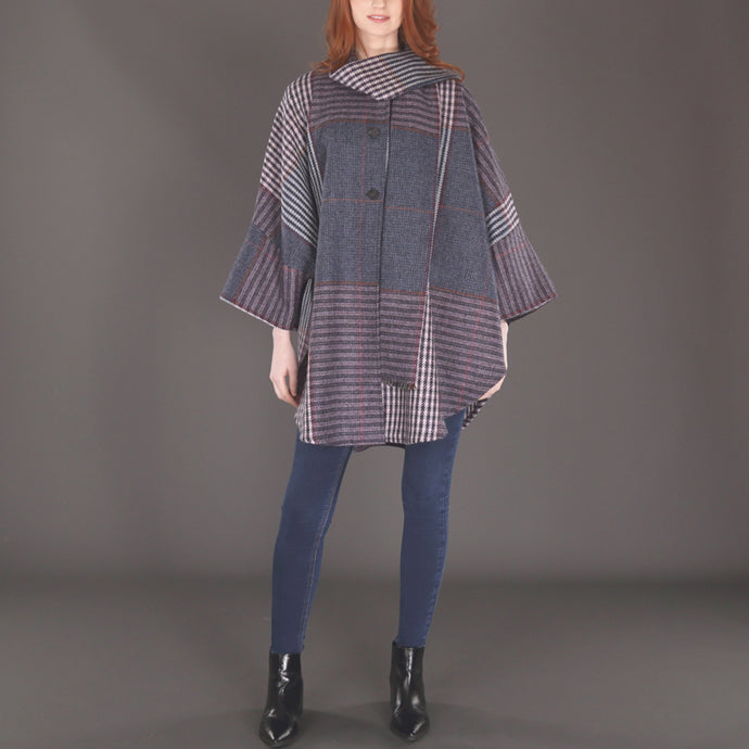 Navy Prince of Wales Check Faye Double Breasted Mac Coat