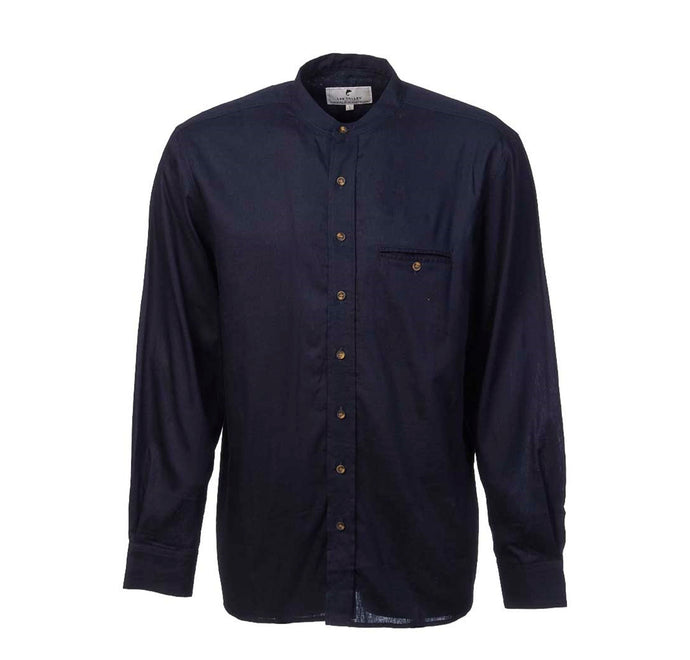 Navy Stripe Cotton Grandfather Shirt