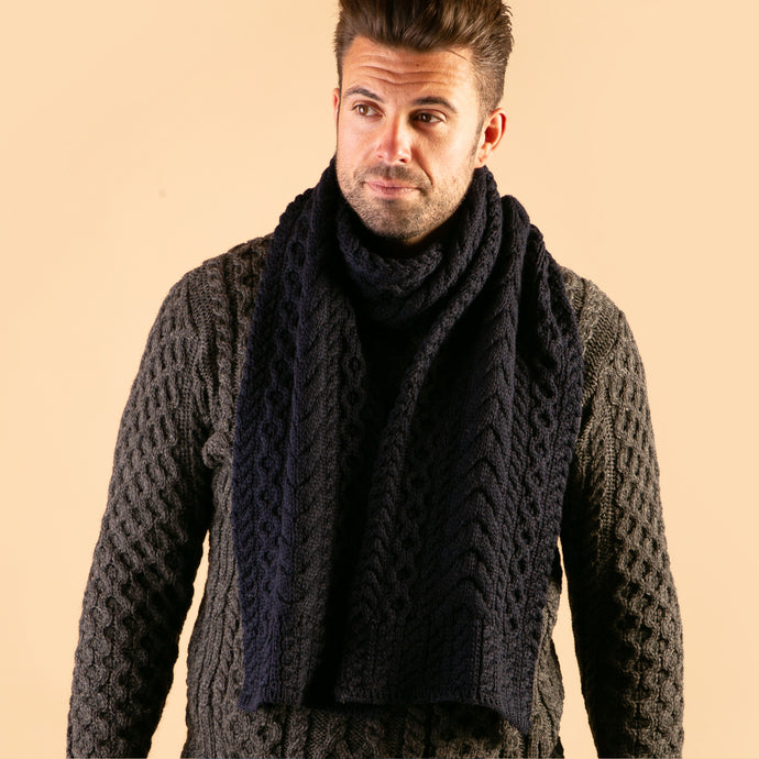 Navy Hand Knit Aran Scarf