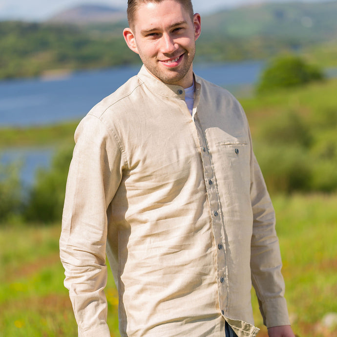 Natural Beige Linen & Cotton Grandfather Shirt
