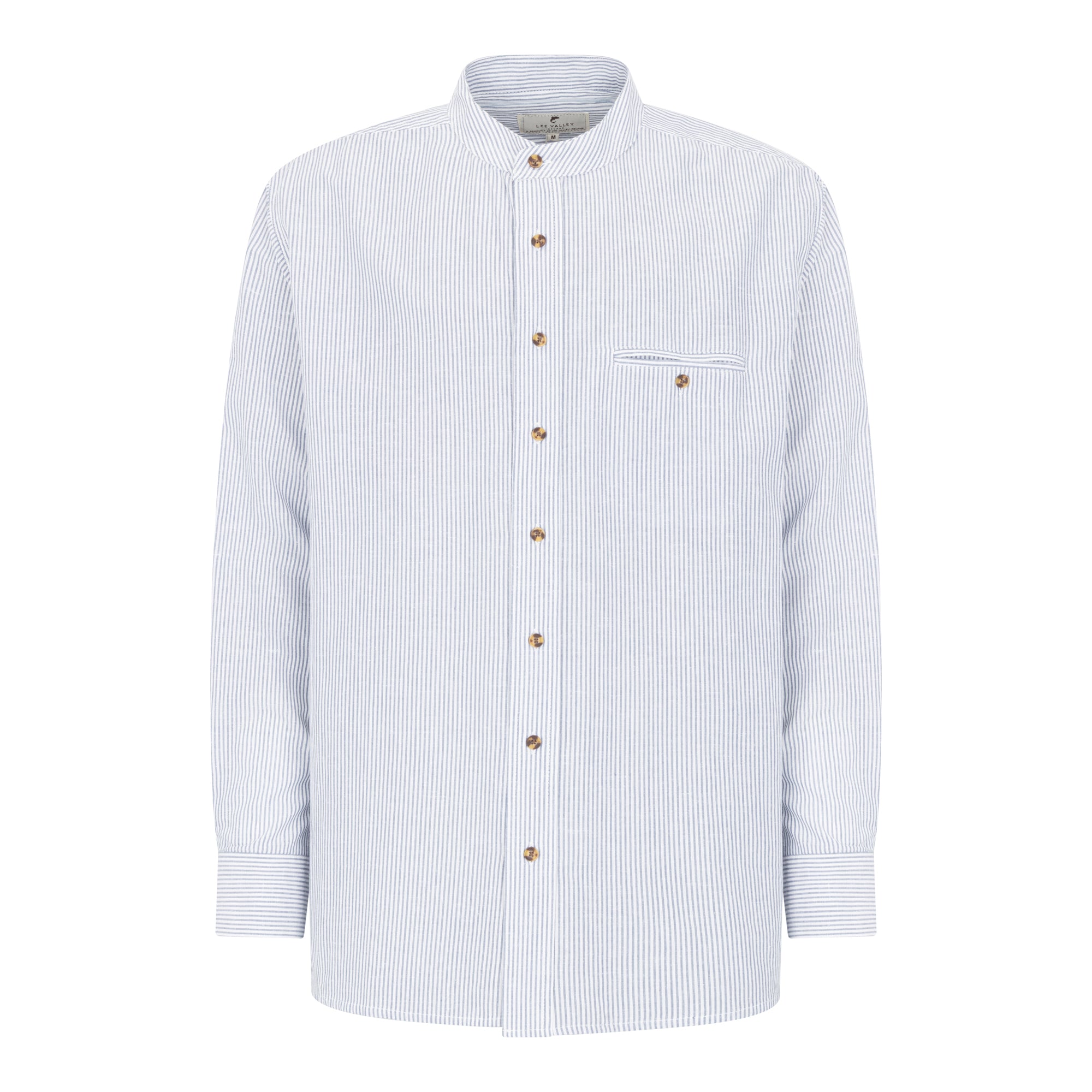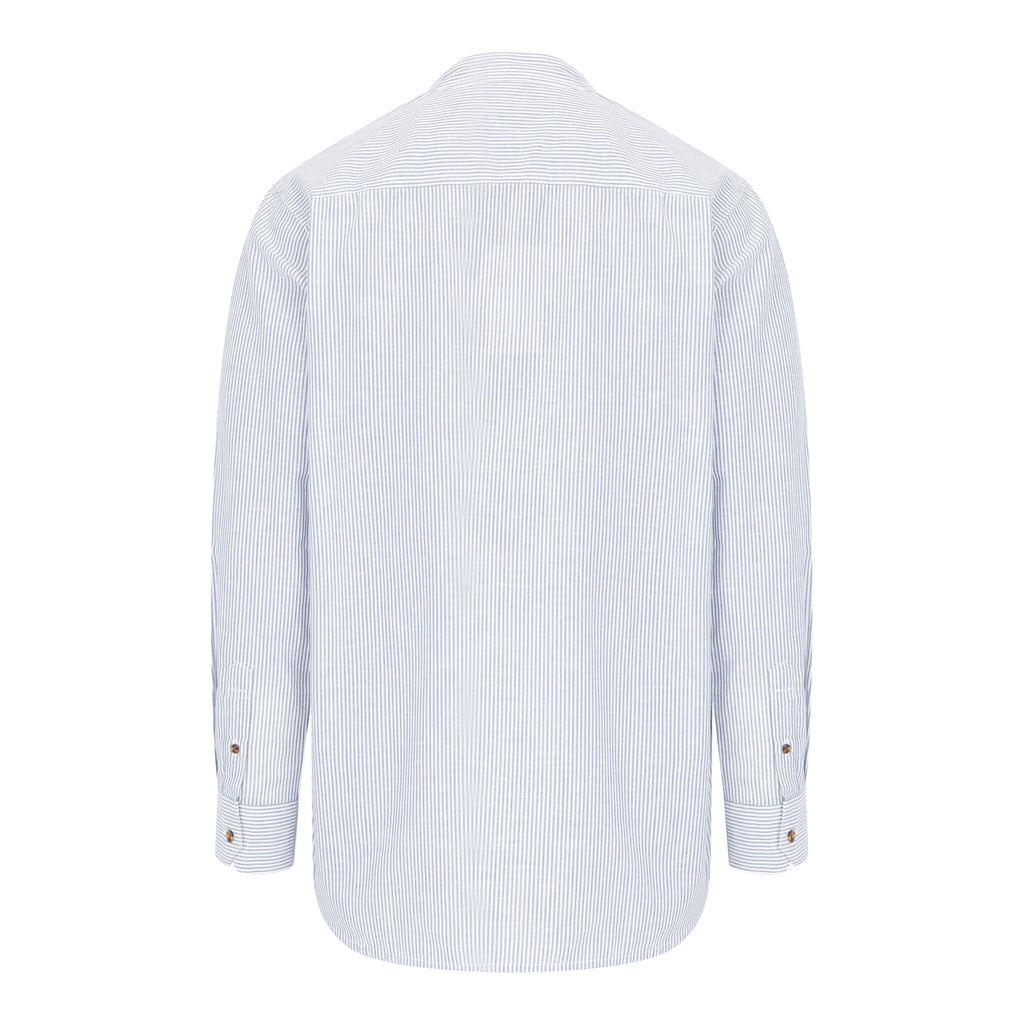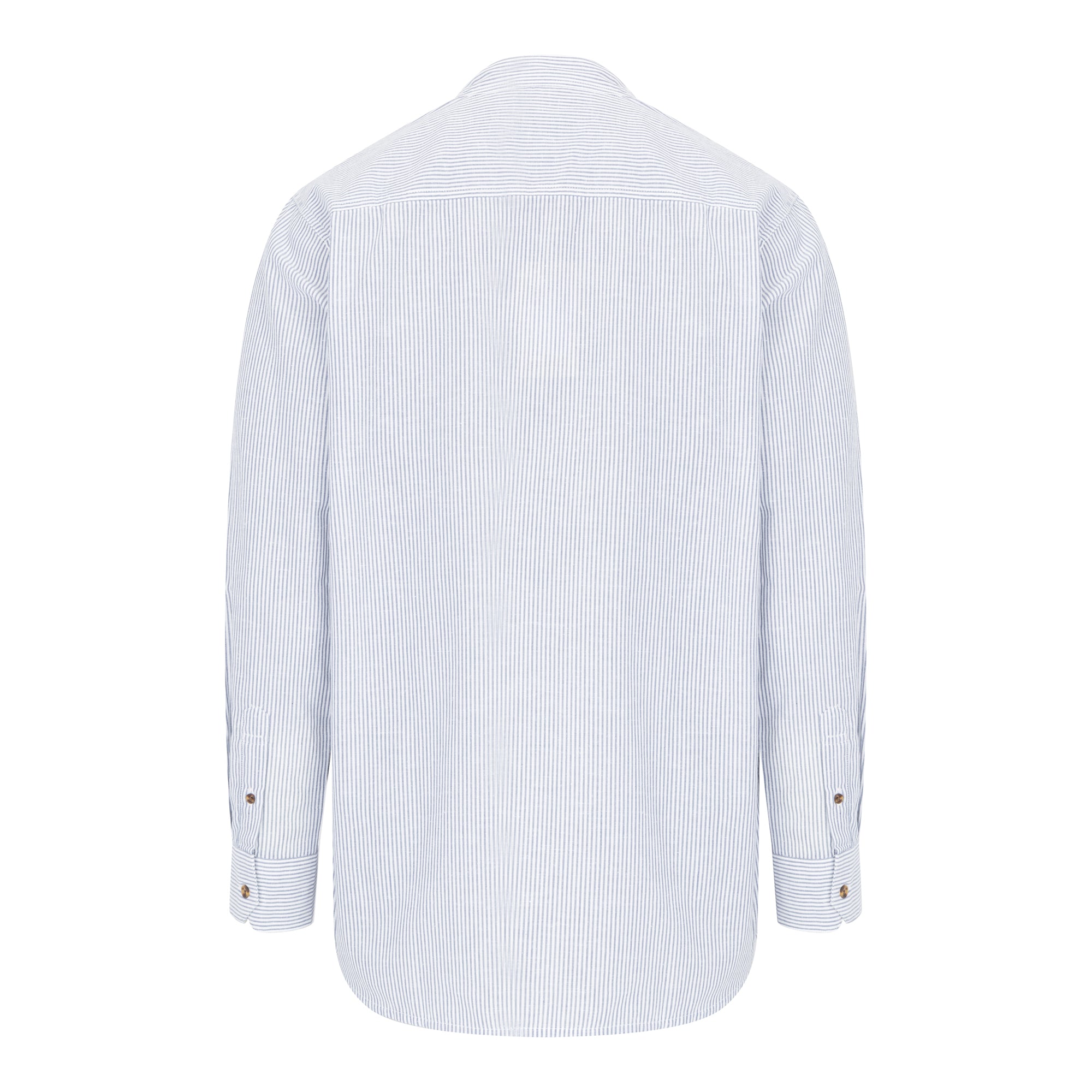 Blue & White Stripe Linen & Cotton Grandfather Shirt