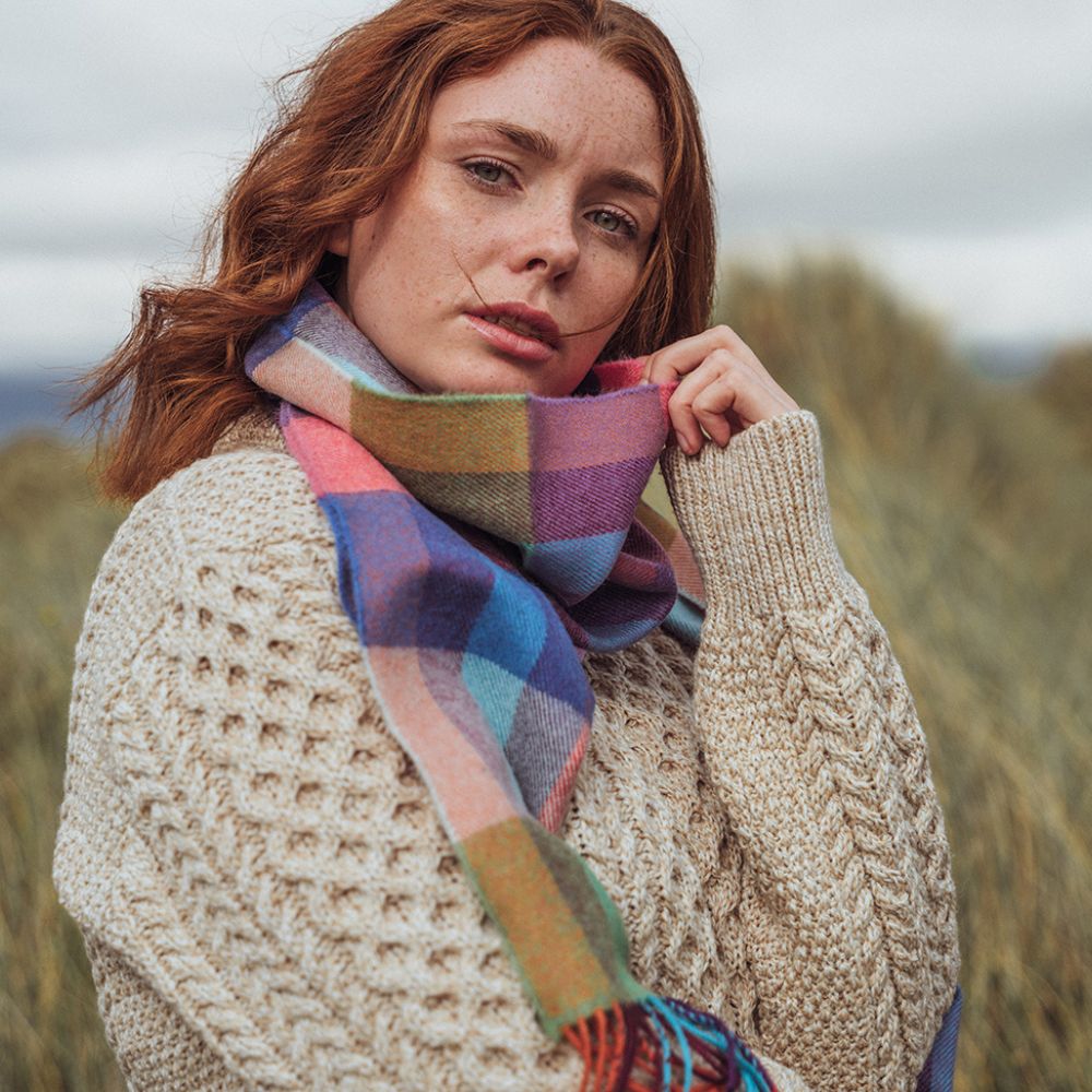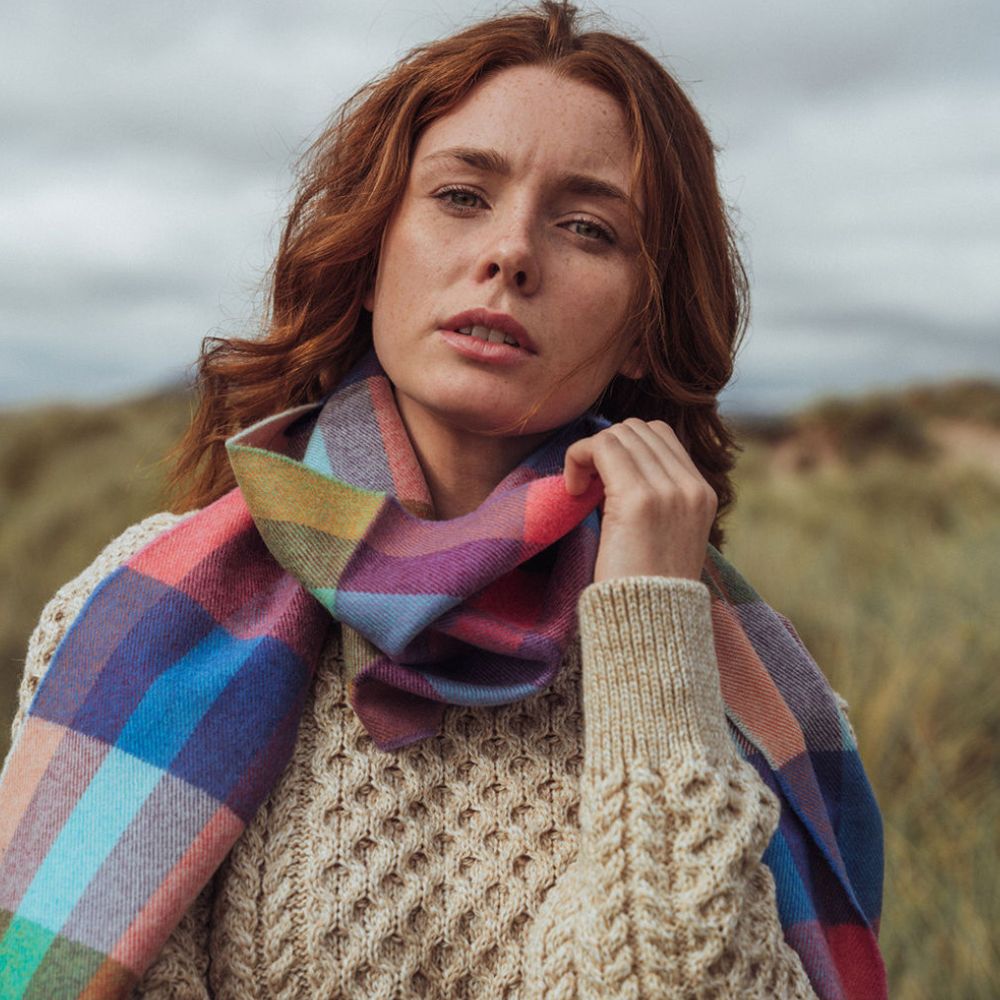 Wrap yourself in the luxurious comfort and vibrant style of our Purple Blue Green Square Merino Wool Scarf.