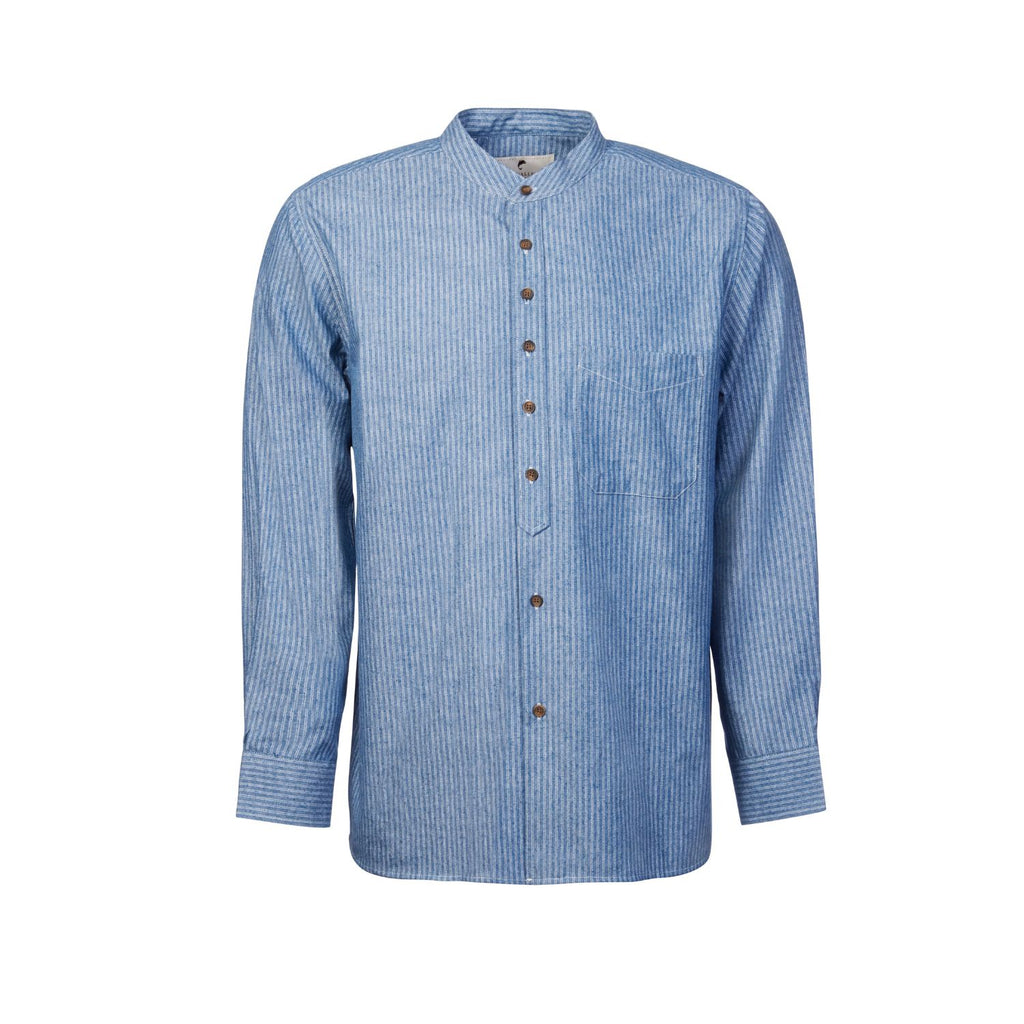 Blue & White Stripe Linen & Cotton Grandfather Shirt