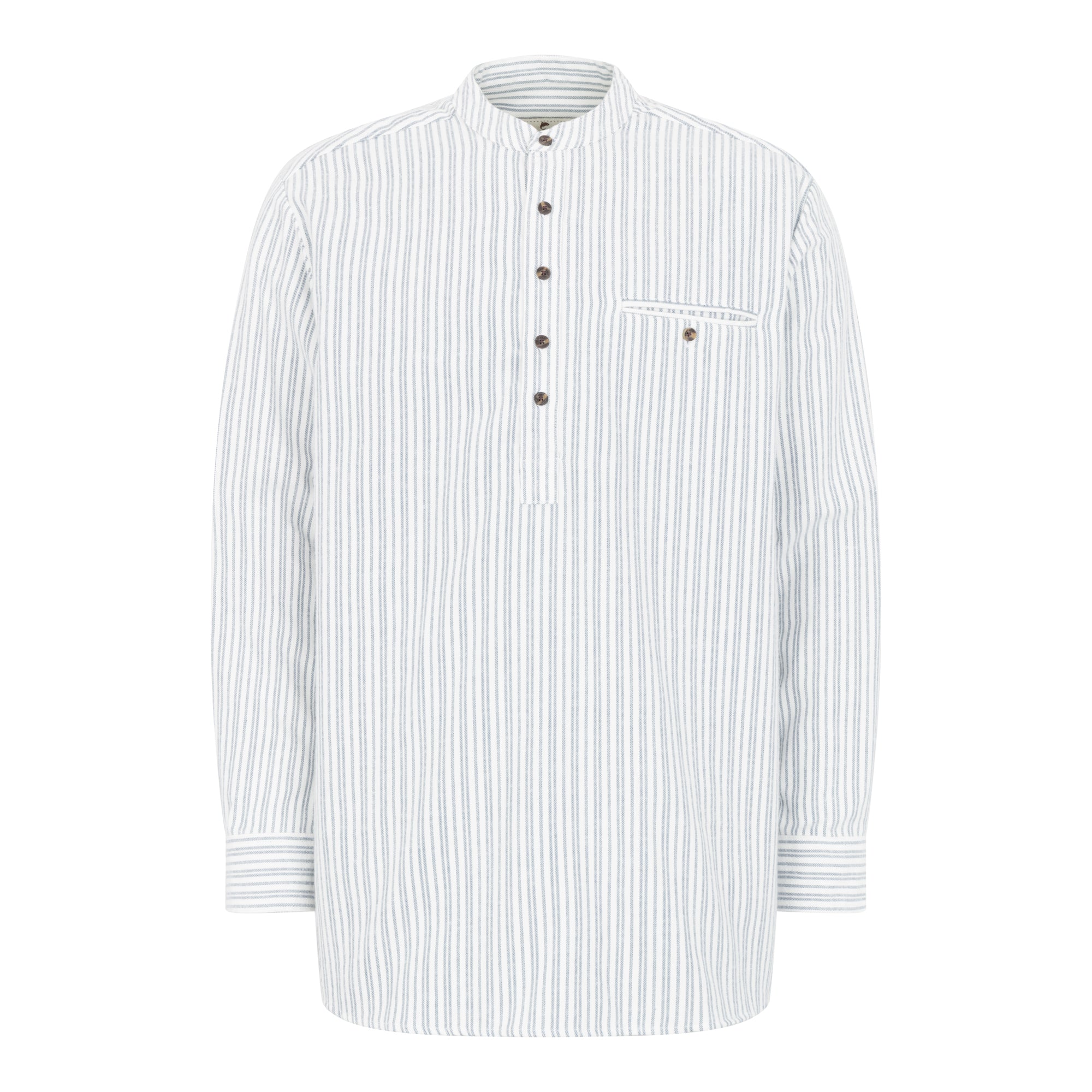 Blue & Ivory Stripe Cotton Grandfather Shirt