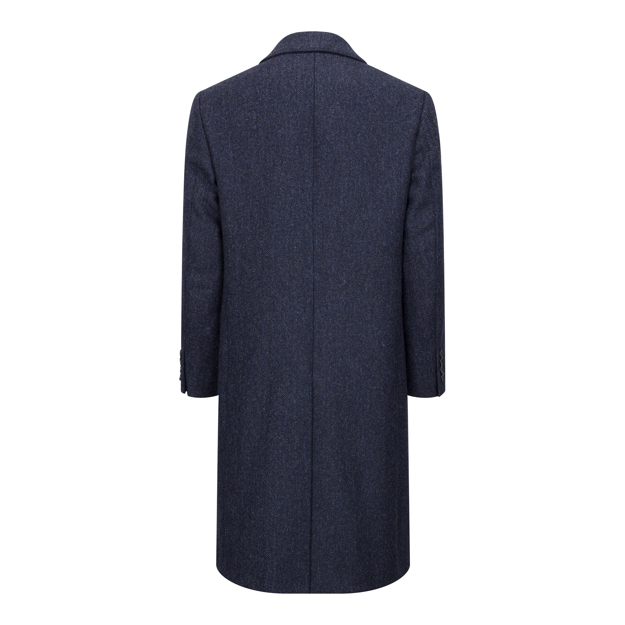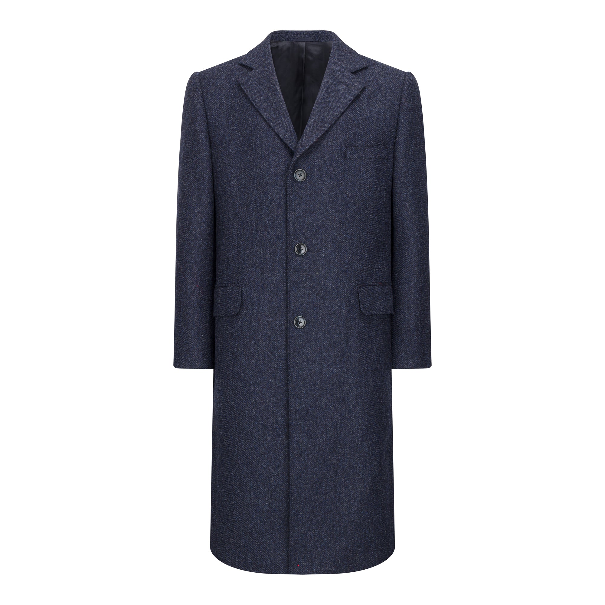 Our Navy Herringbone Patrick Overcoat is a timeless piece which is an understated addition to any wardrobe. Crafted from a premium wool herringbone, this Irish tweed coat offers the perfect balance of durability, warmth, and refined style.