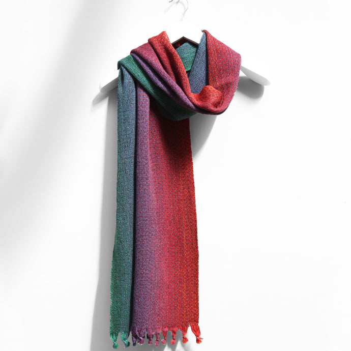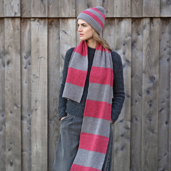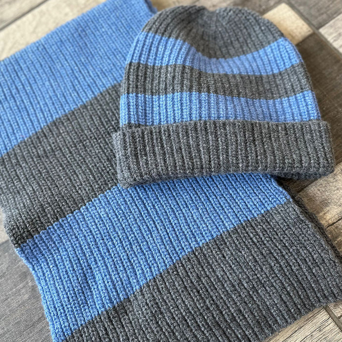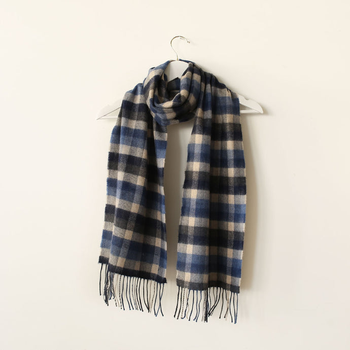 Blue Grey Stone White Block Check Merino Wool Scarf