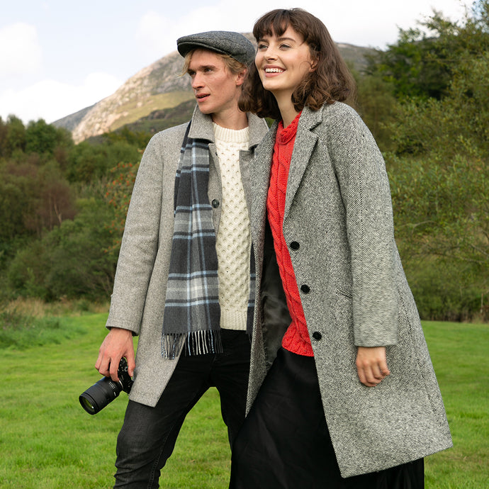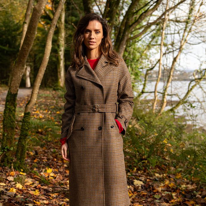 Brown & Red Houndstooth Merino and Cashmere Niamh Double Breasted Coat