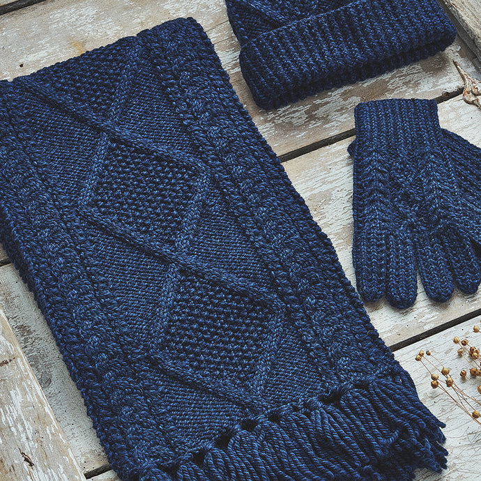 Navy Hand Knit Aran Scarf