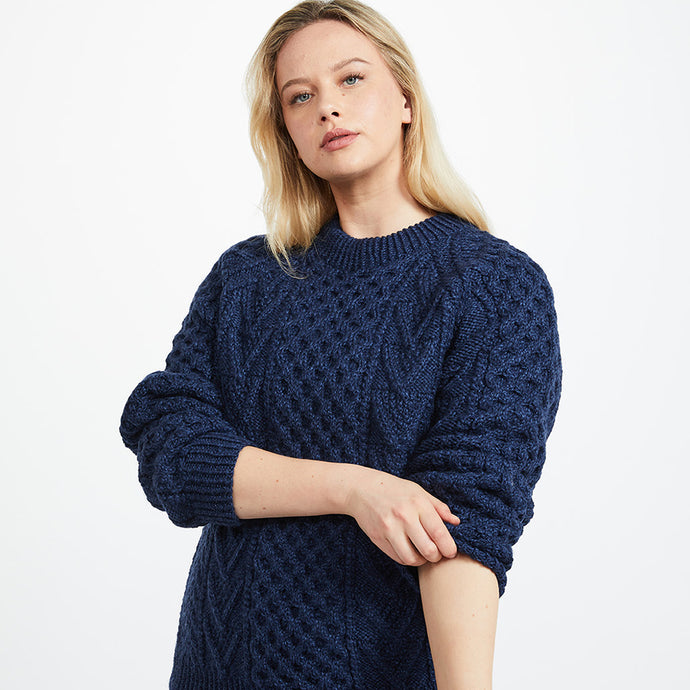 Navy Hand Knit Unisex Crew Neck Aran Sweater