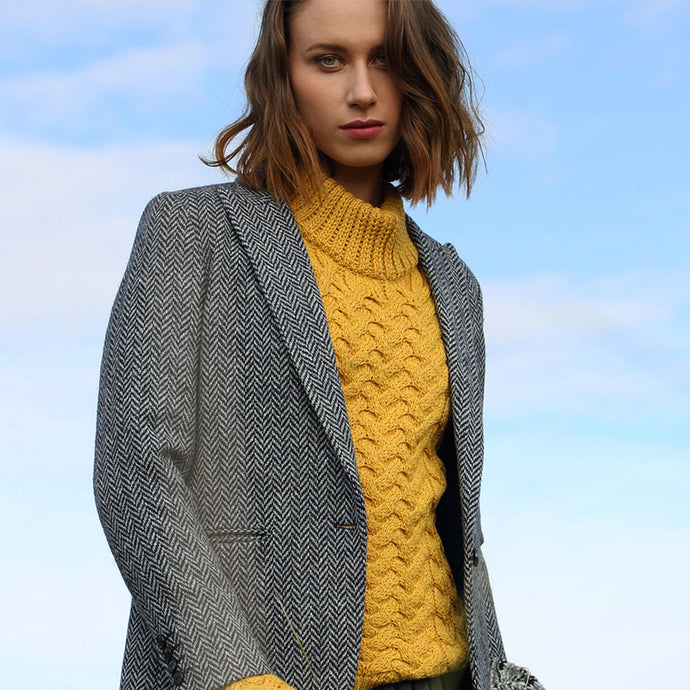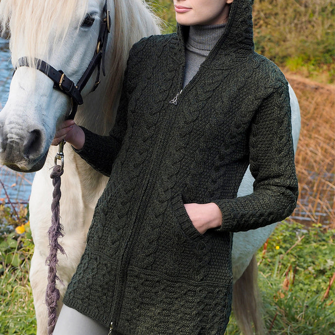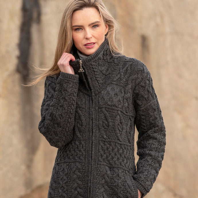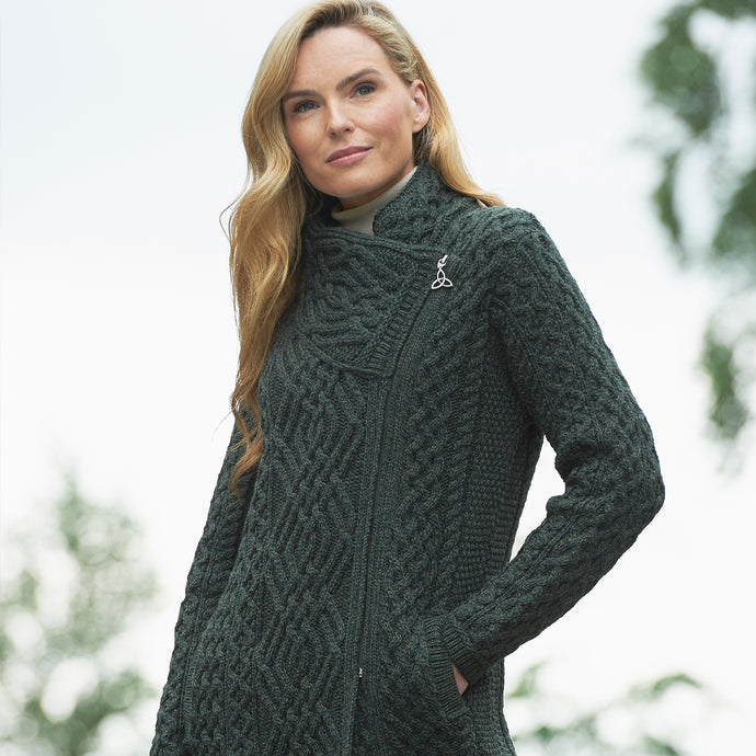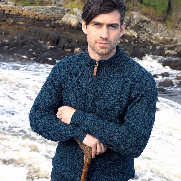 Navy Unisex Hand Knit Aran Zip Cardigan