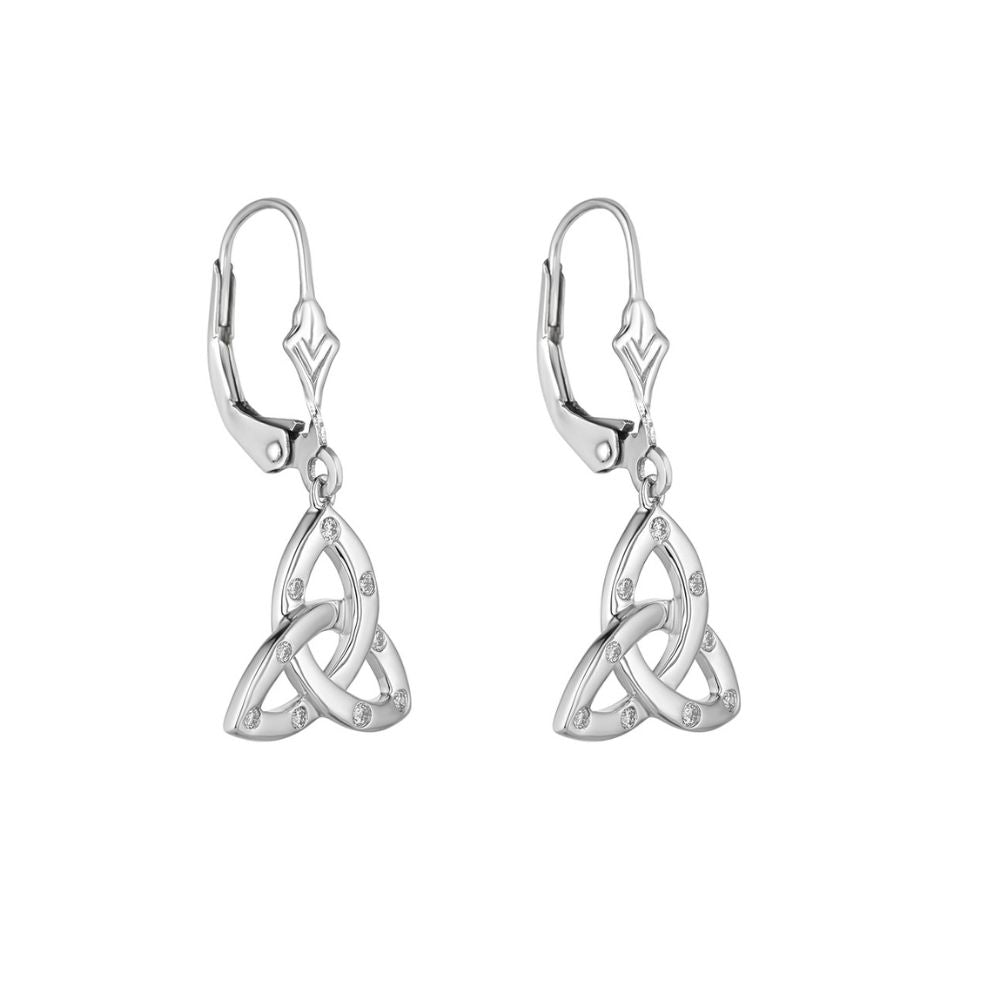 14K White Gold Inlaid Diamond Trinity Knot Drop Earrings