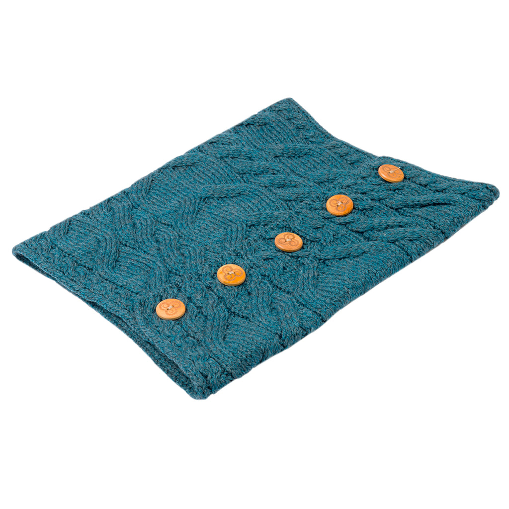 This wool snood is designed and made in Ireland with traditional aran stitches.