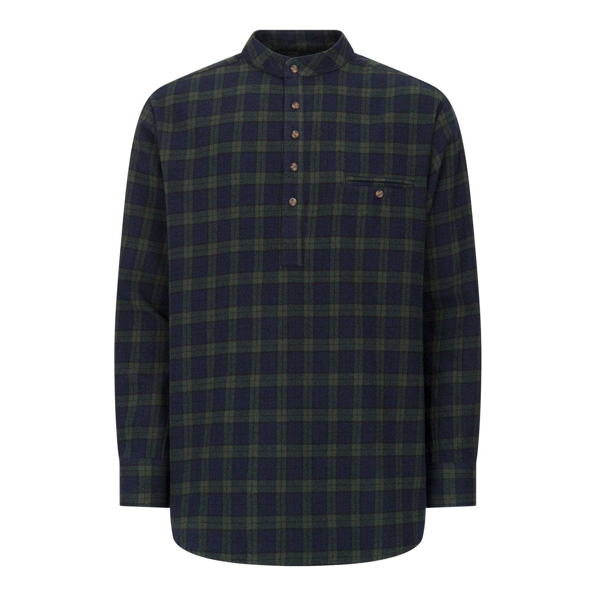 This navy and green check Grandfather Shirt is one of our best sellers.