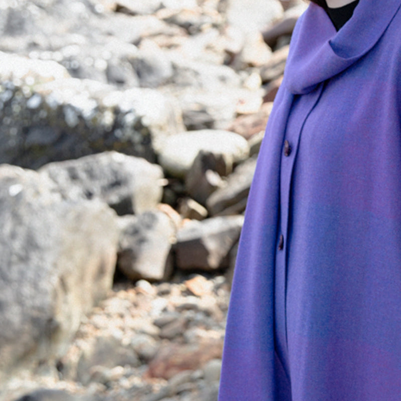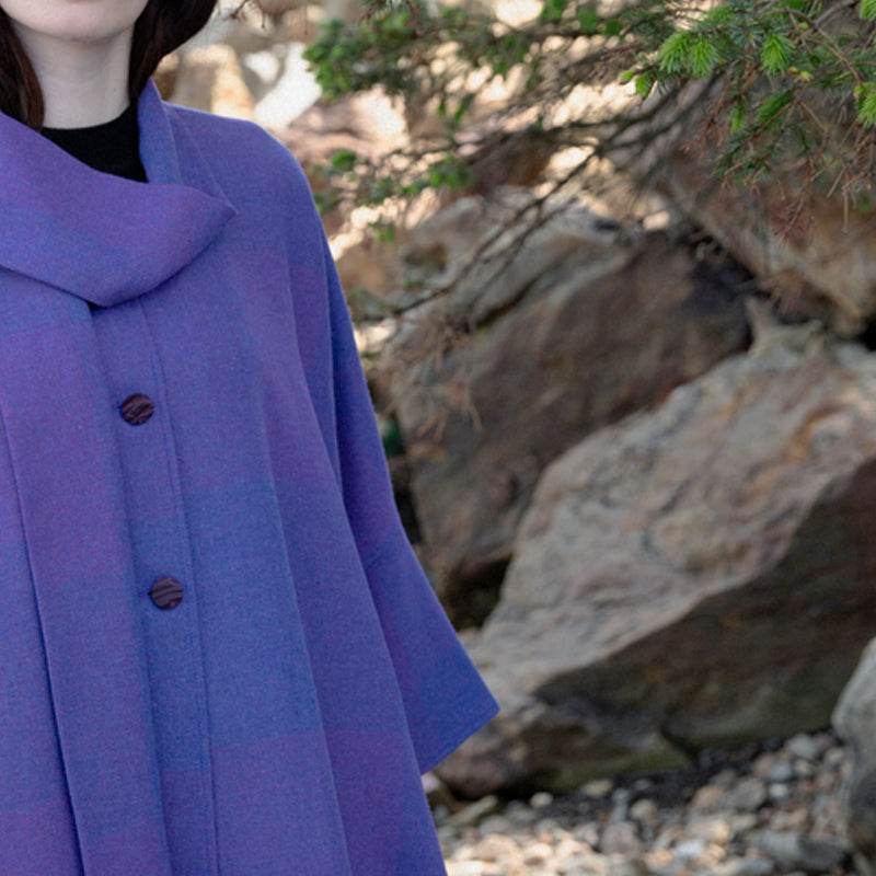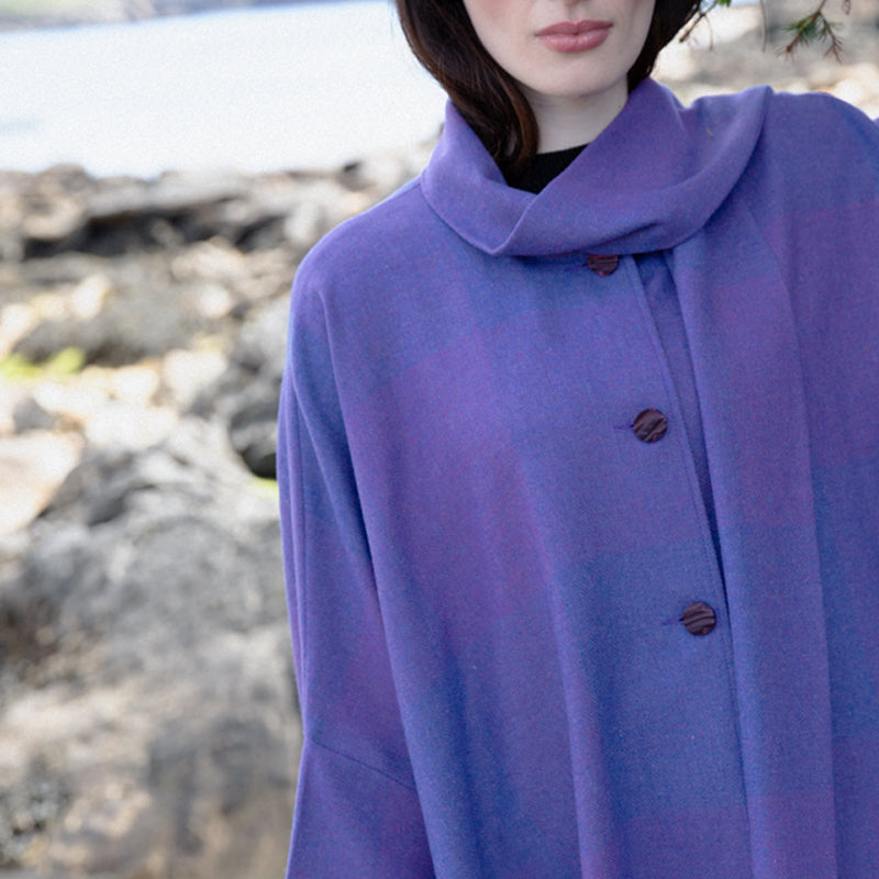 At Triona Design, our signature purple square Roisin wool cape has become one of our most coveted pieces.