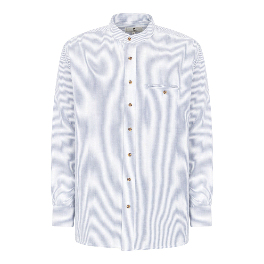 Blue & White Stripe Linen & Cotton Grandfather Shirt