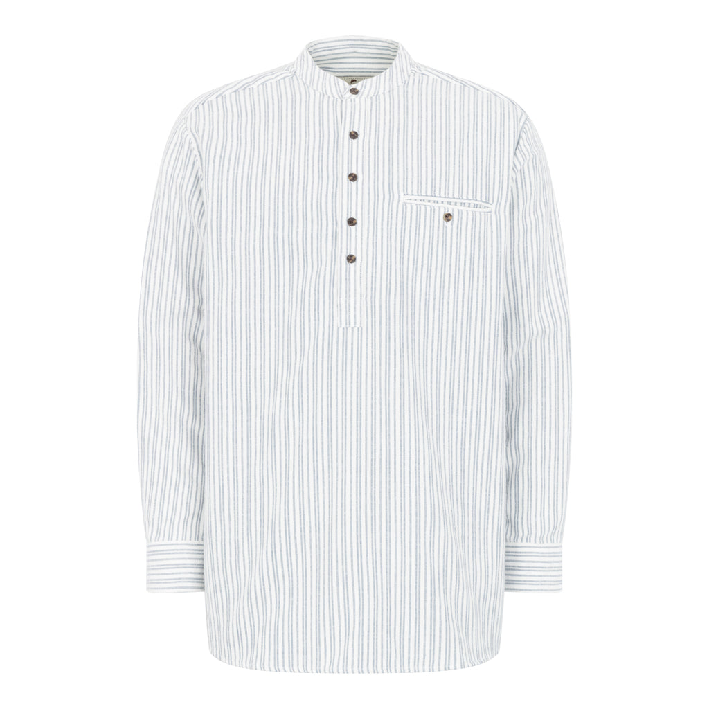 Blue & Ivory Stripe Cotton Grandfather Shirt