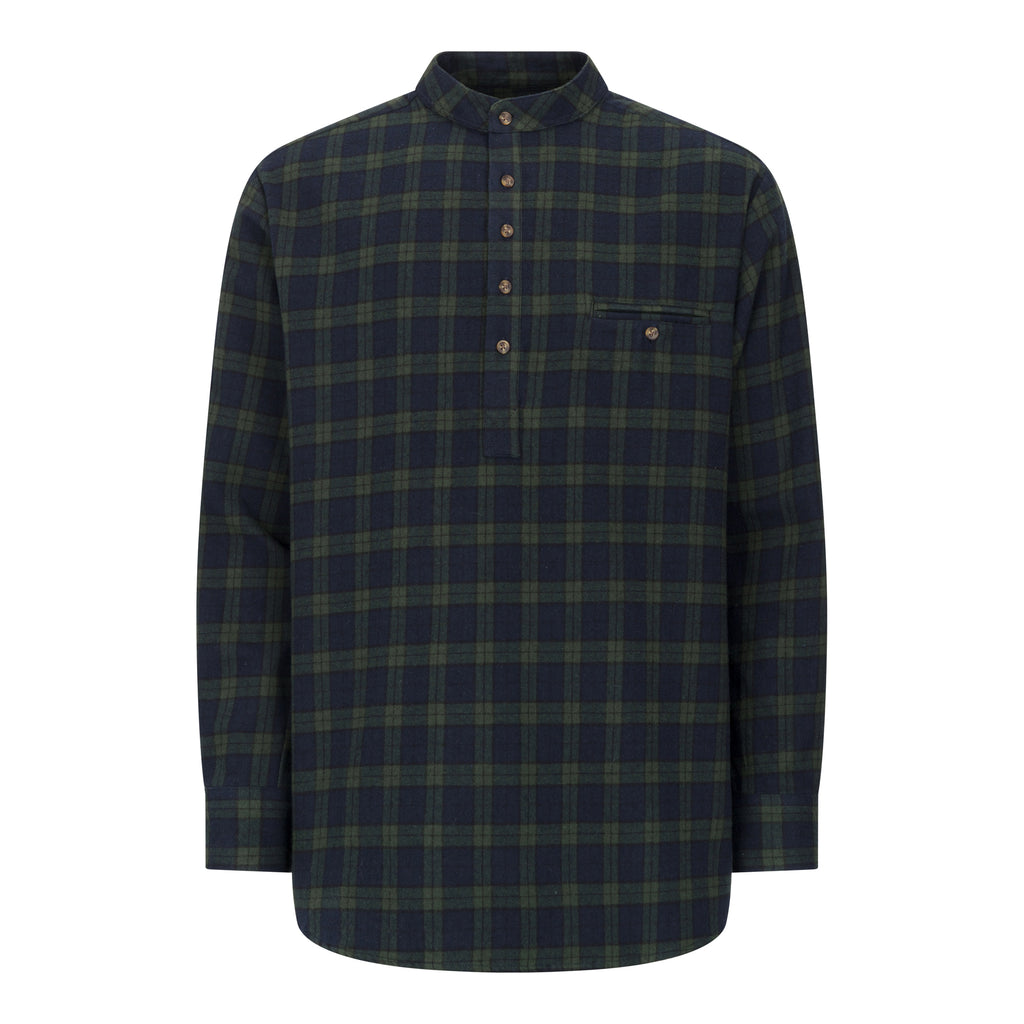 Navy & Green Check Cotton Grandfather Shirt