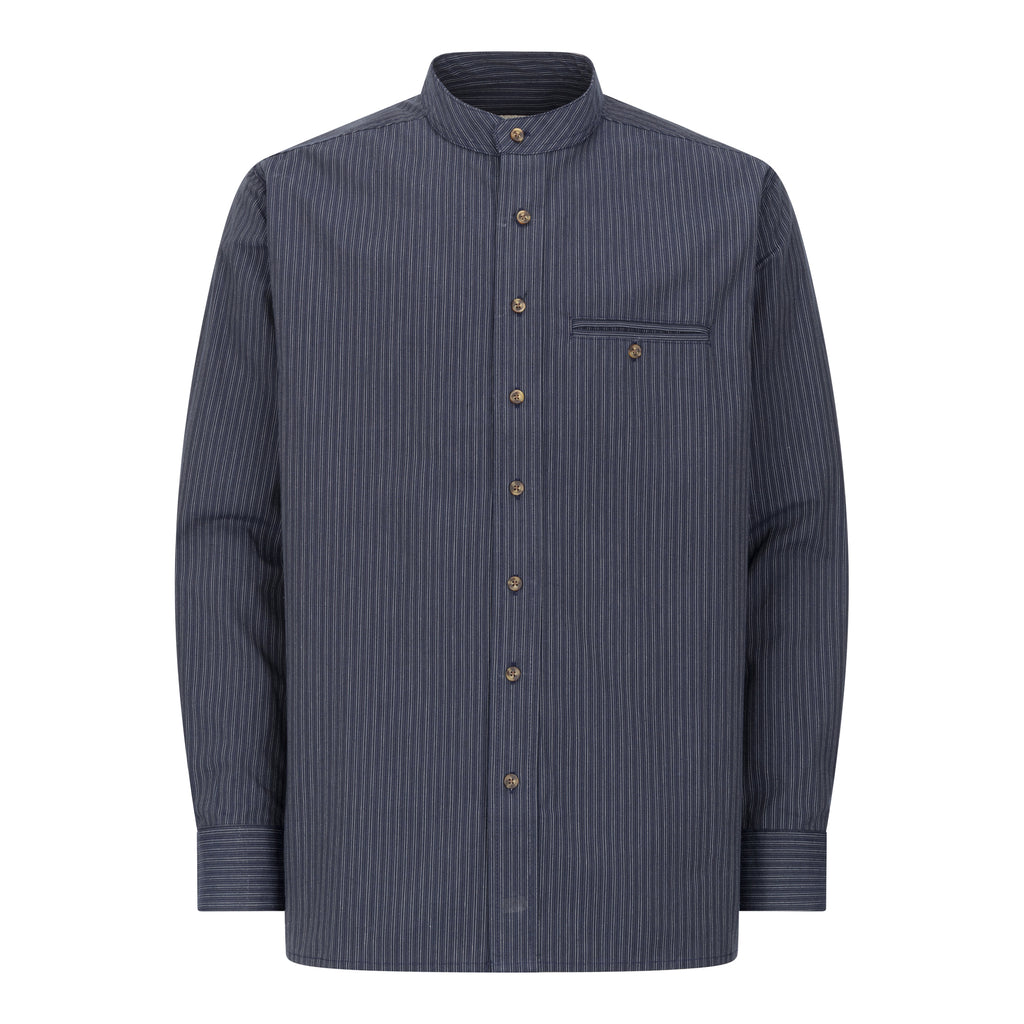 Navy Stripe Cotton Grandfather Shirt