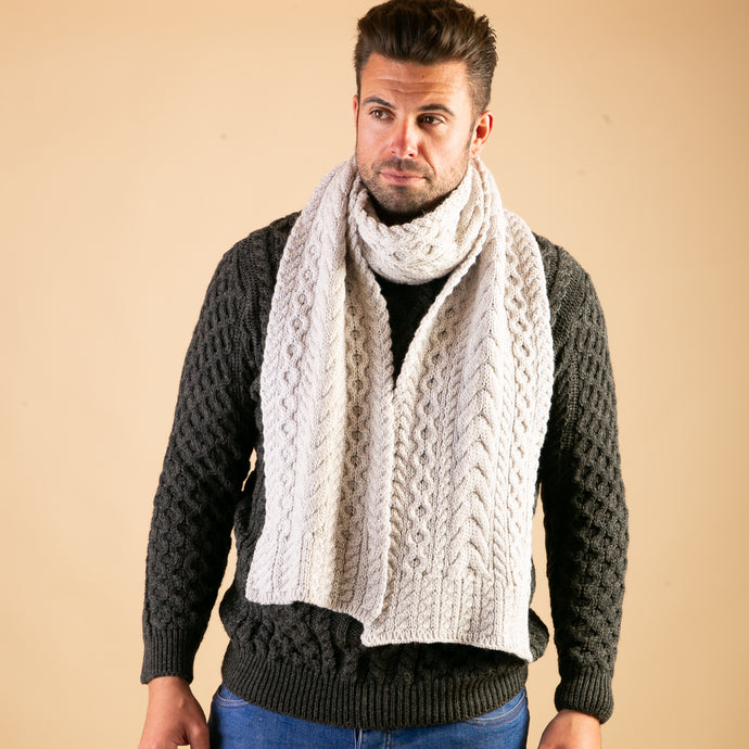 Tan Stripe Donegal Tweed Scarf