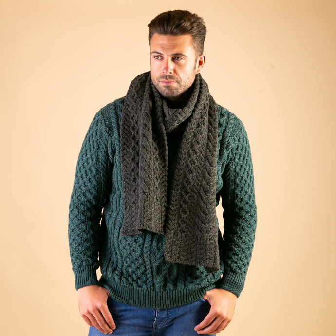 Merino & Cashmere Scarf, Charcoal Grey Herringbone