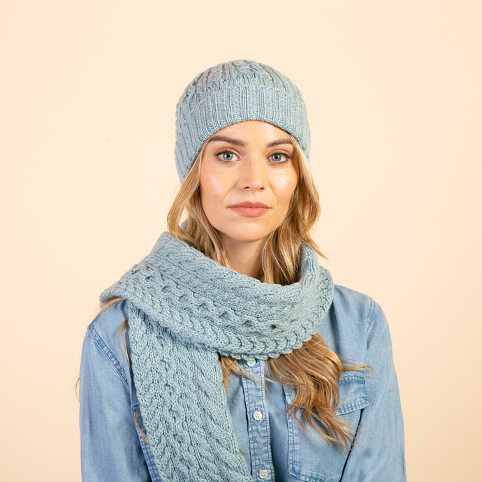 Petrol Aran Wool Hat with Buttons