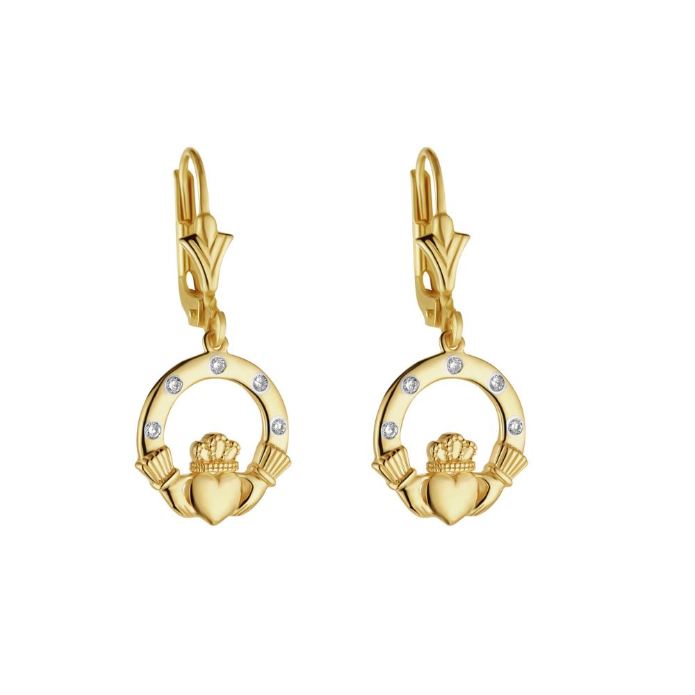 14K Gold Diamond Detail Claddagh Drop Earrings