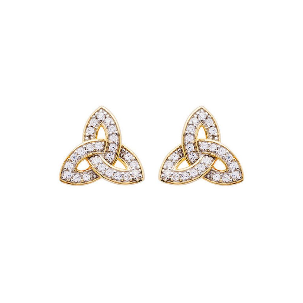 14K Gold Vermeil CZ Encrusted Trinity Knot Earrings