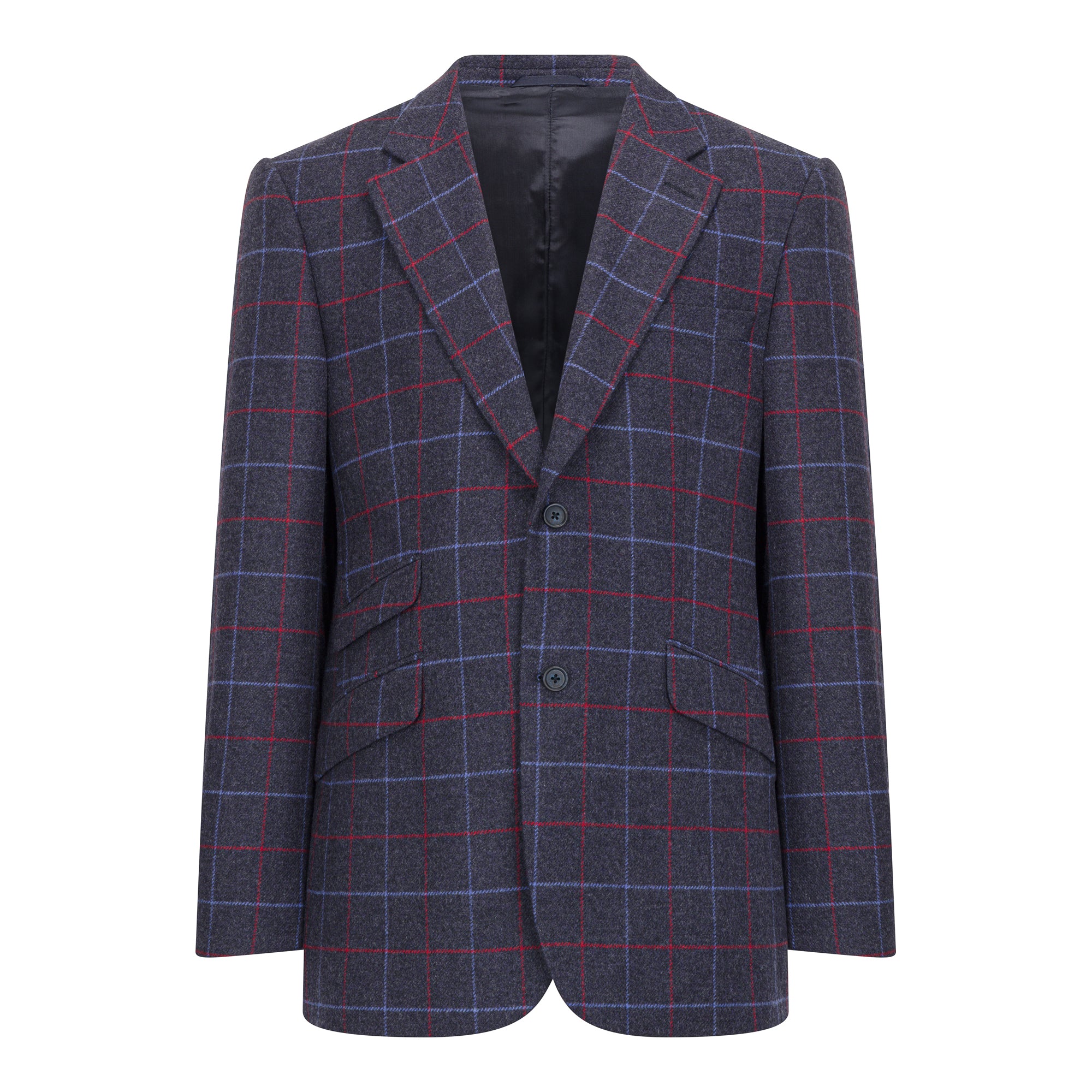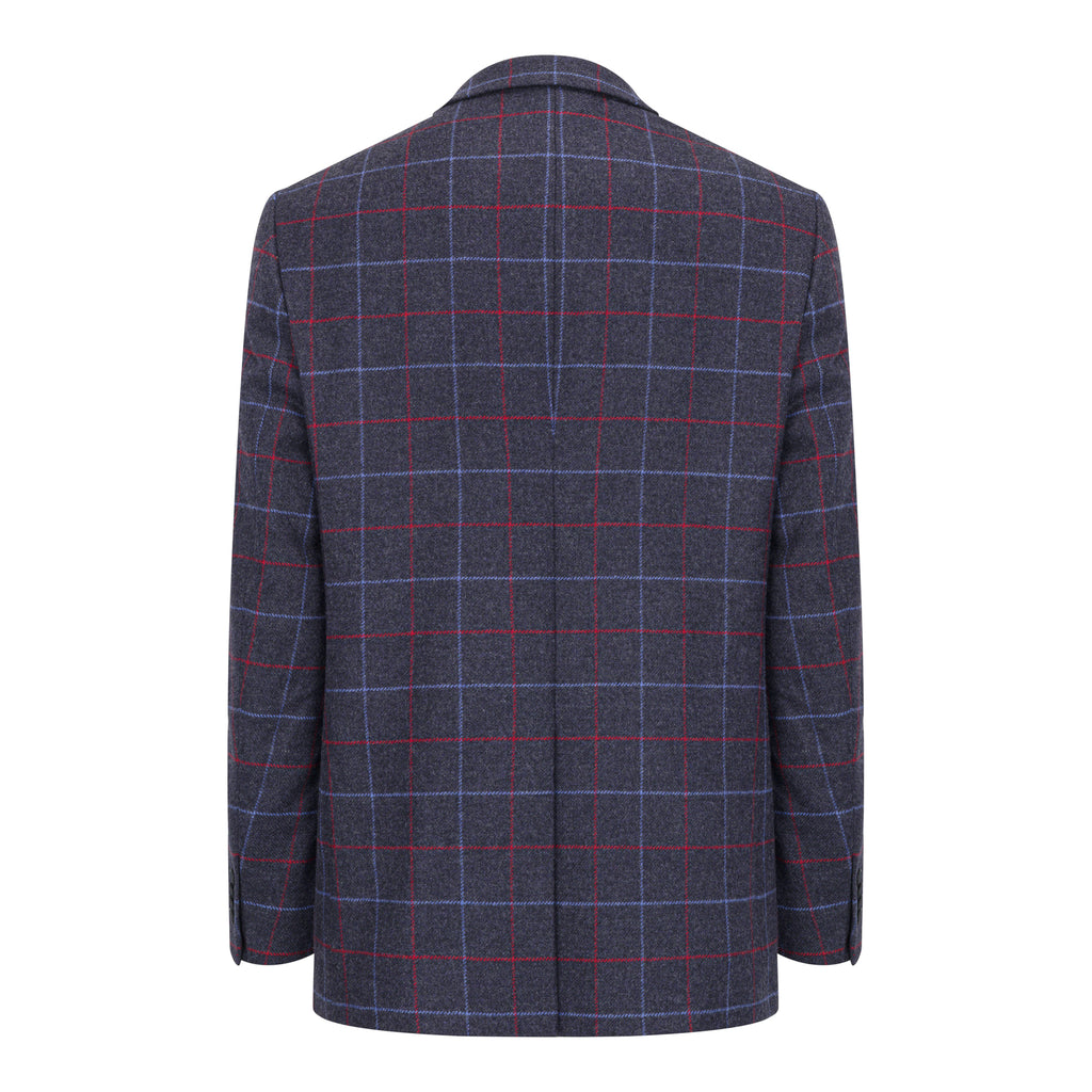 Navy & Red Windowpane Merino and Cashmere James Classic Tweed Jacket