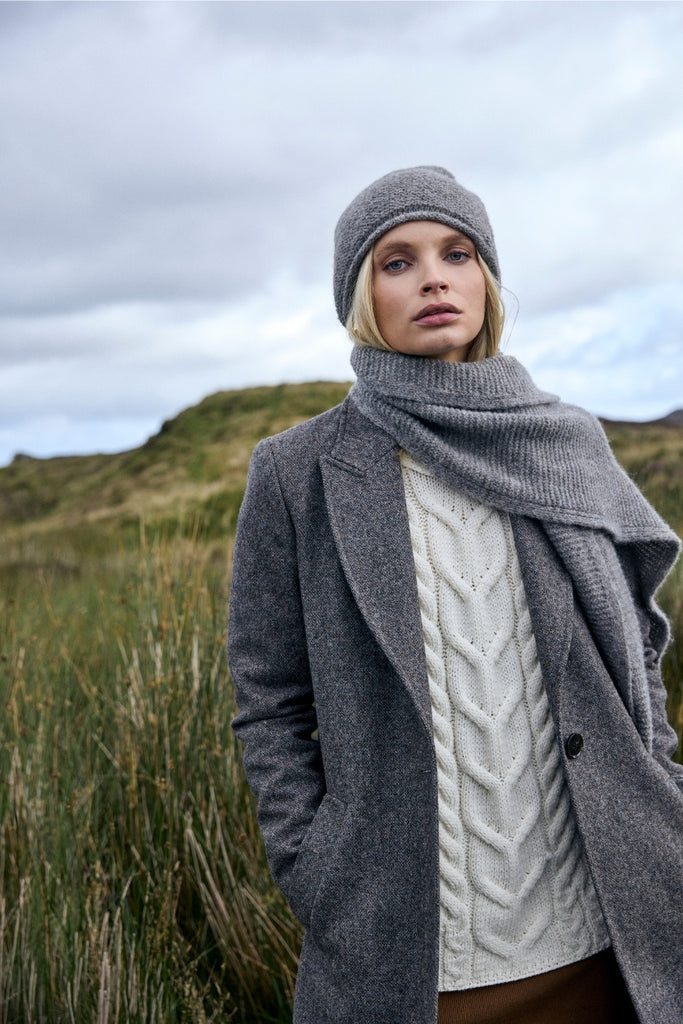 Introducing the Grey Salt & Pepper Shannon Tweed Coat from Triona's AW25 Northern Wilds Collection - a true statement of refined elegance and modern sophistication.