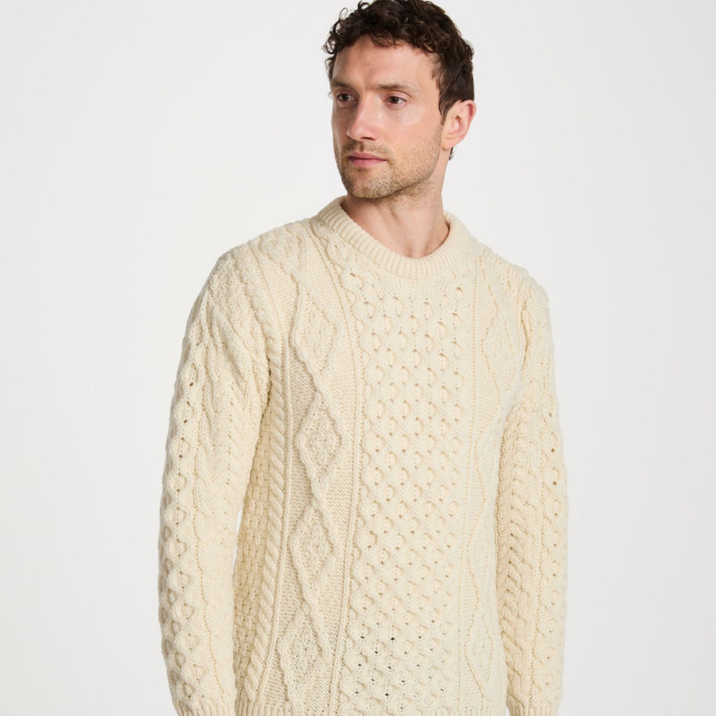 Natural Fleck Unisex Classic Crew Neck Aran Sweater