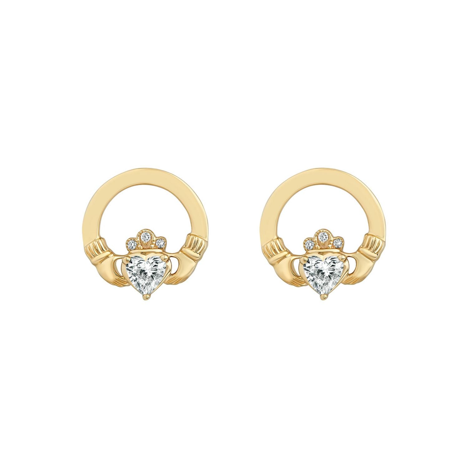 14K Gold Lab Diamond Claddagh Stud Earrings