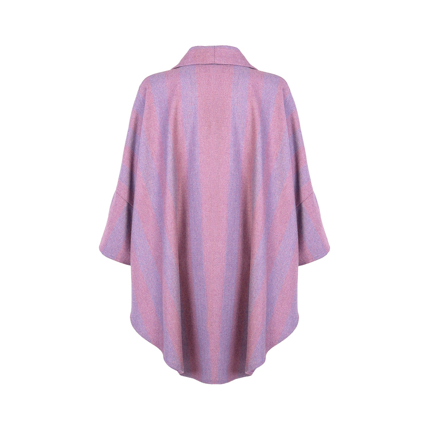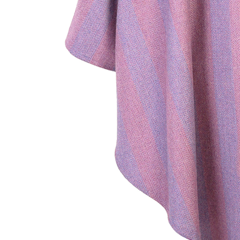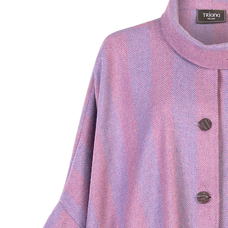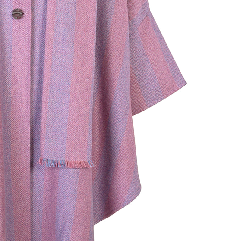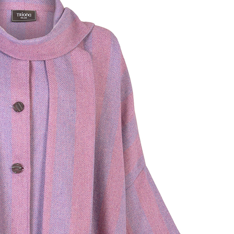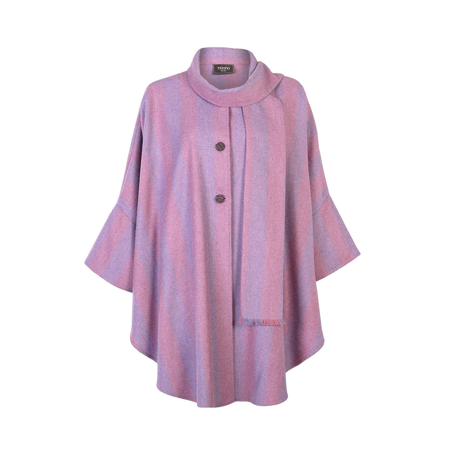 This exclusive mauve purple toned tweed, combined with the button fastening with scarf attached mean that this wool cape will soon become a go to garment in your wardrobe for many years.