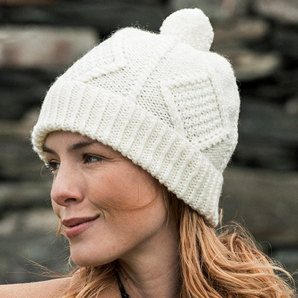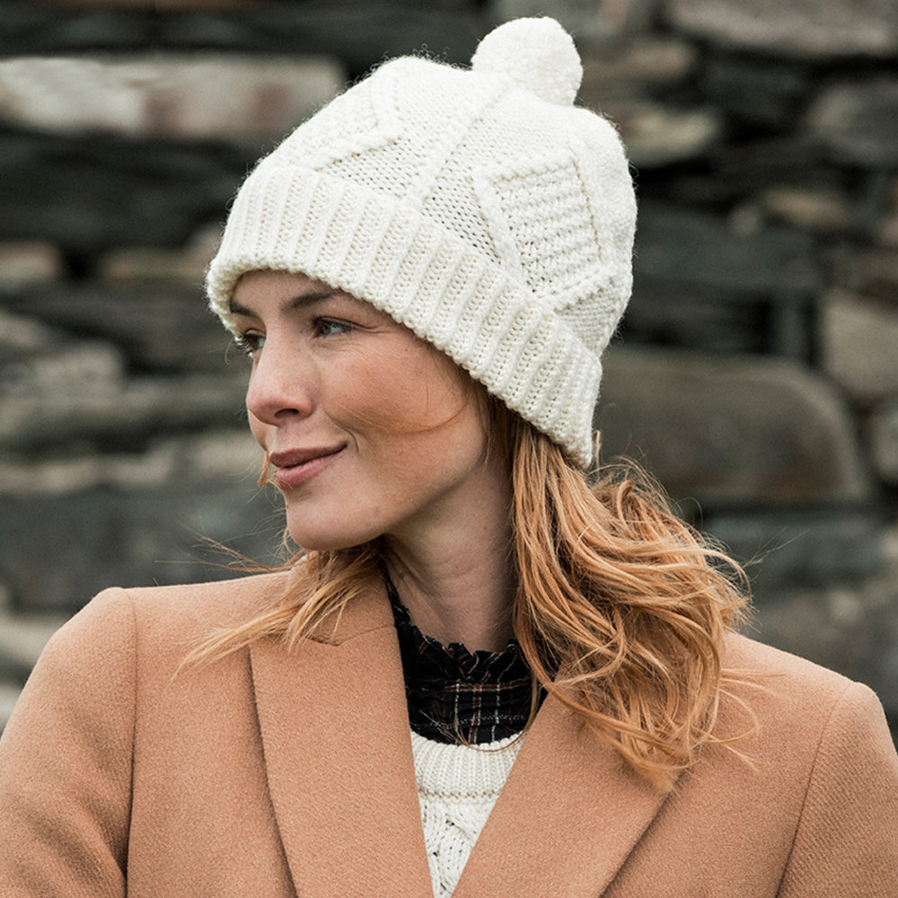 Designed and hand knit in Ireland, this wool hat is a cosy addition to any outfit.