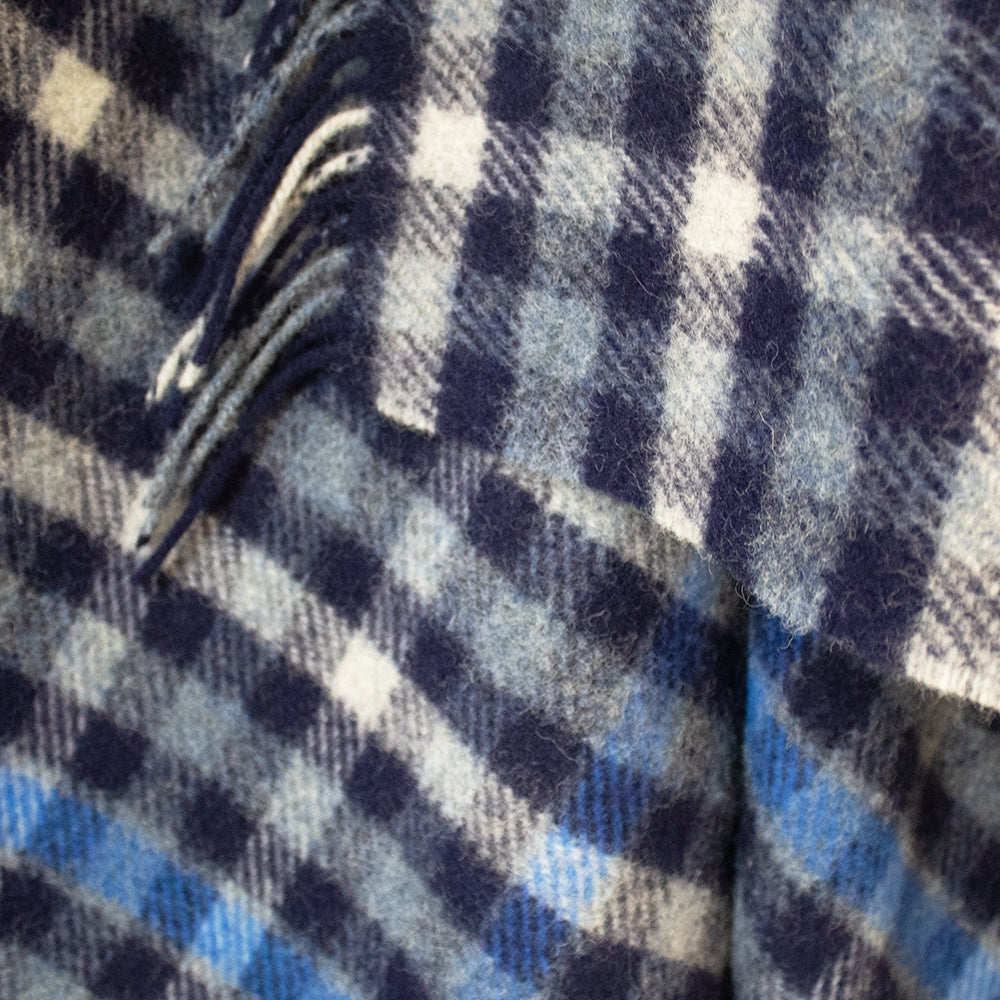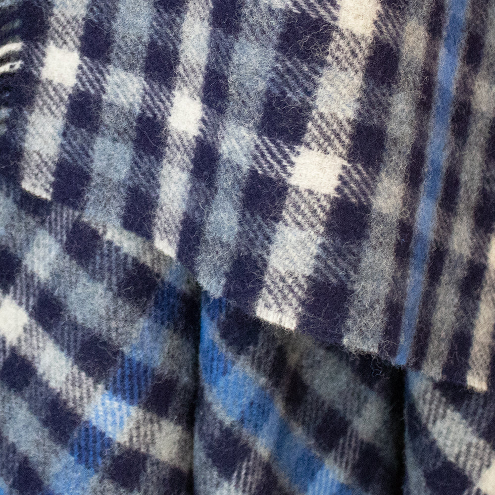 Blue & Navy Check Large Wool Blanket