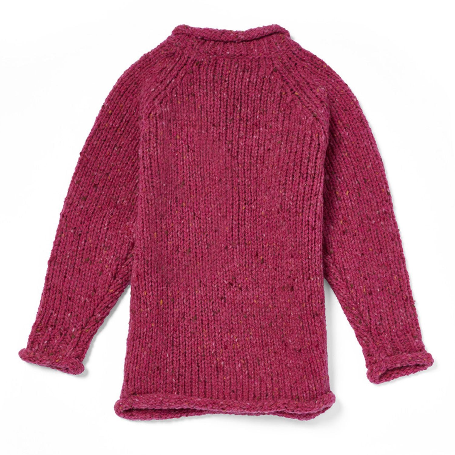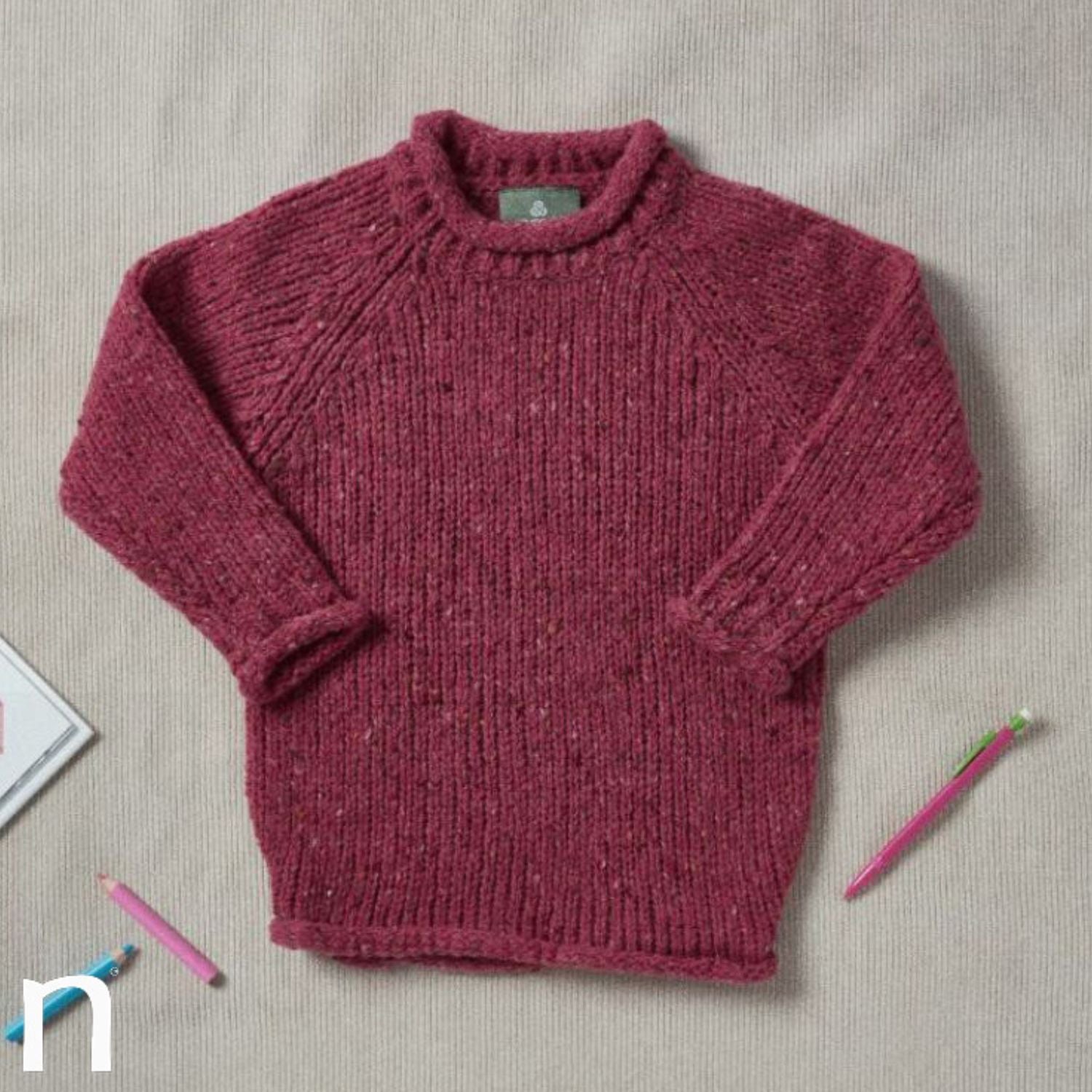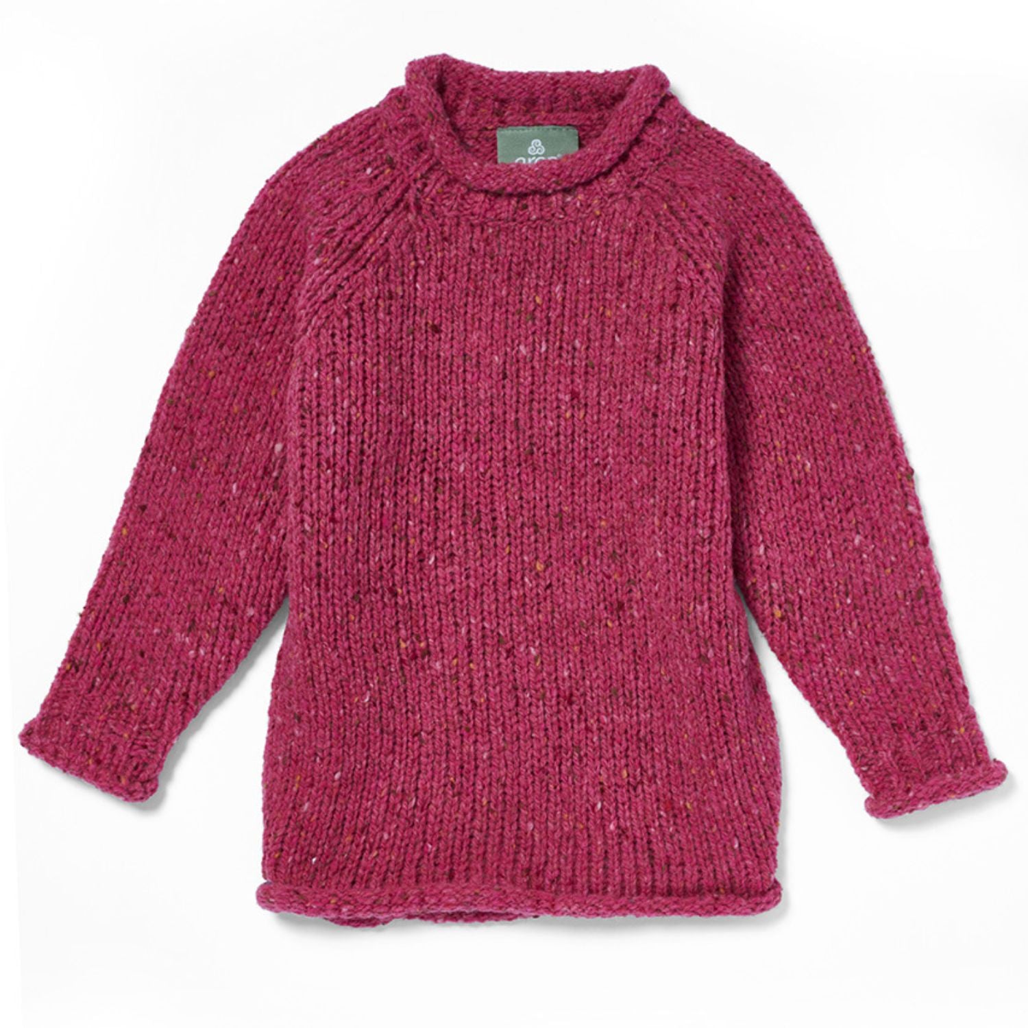 This traditional Aran sweater is reimagined for little ones in a soft Pink Heather shade, blending classic design with thoughtful, child-friendly details.