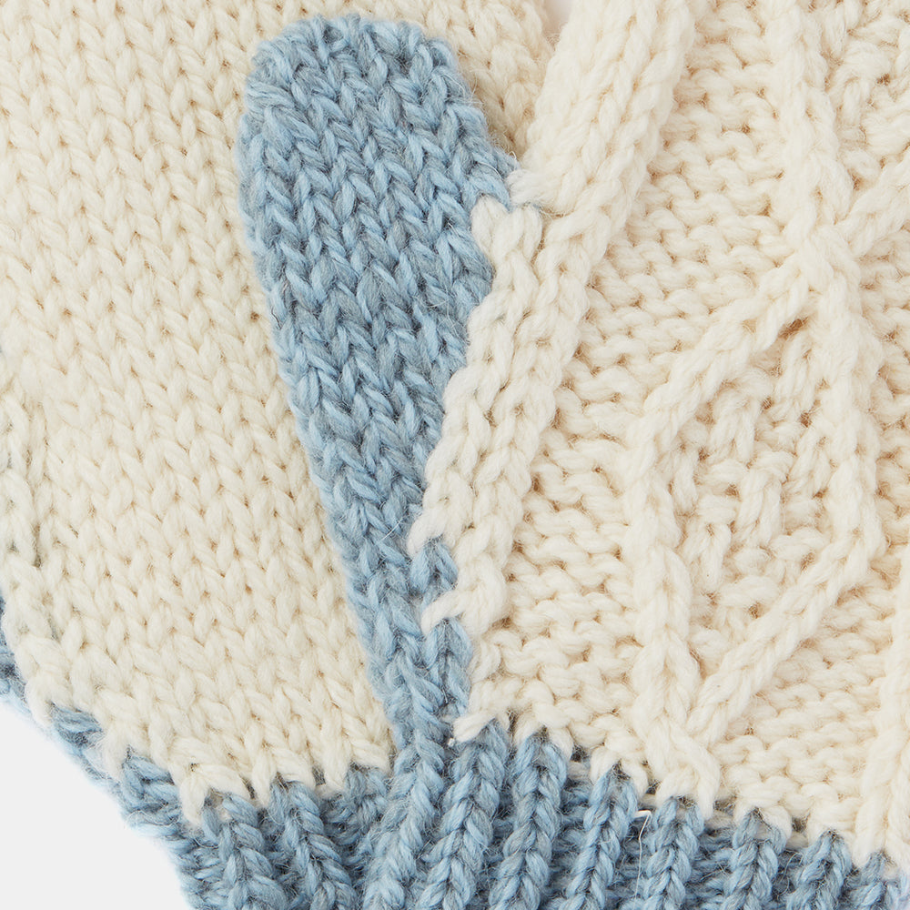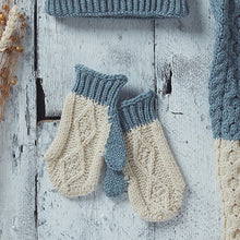 In natural white and a denim blue these stylish knitted mittens will keep your little ones warm this Winter.