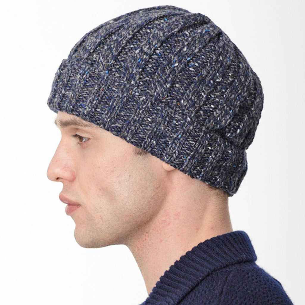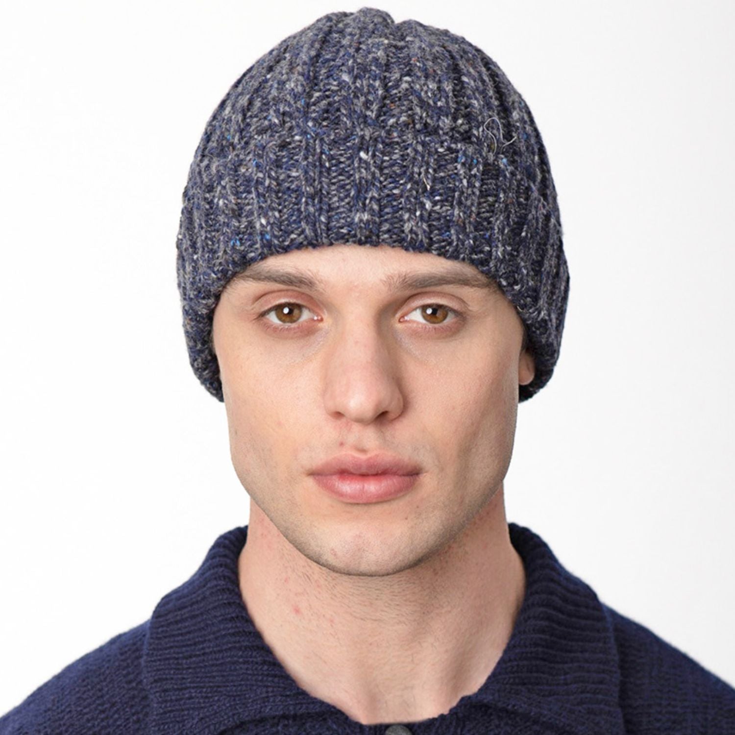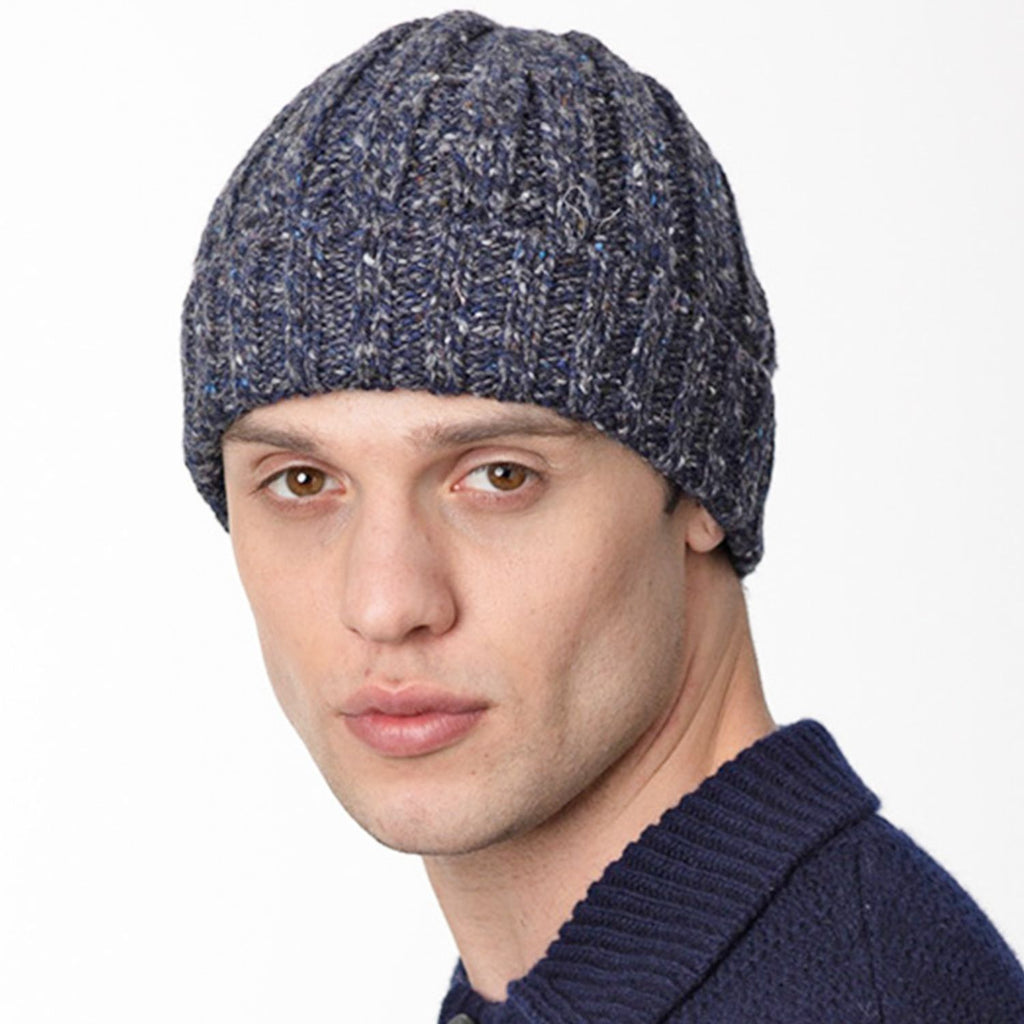 This navy slate lambswool knitted hat is sure to keep you warm in the cooler months.