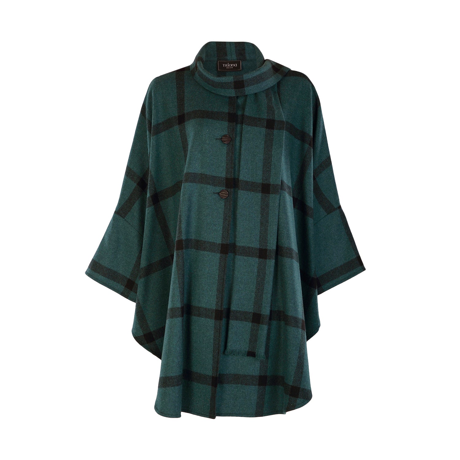 This tweed cape can be buttoned at the front to give a 'jacket' feel or left open with the front folded back to showcase a complimenting top.