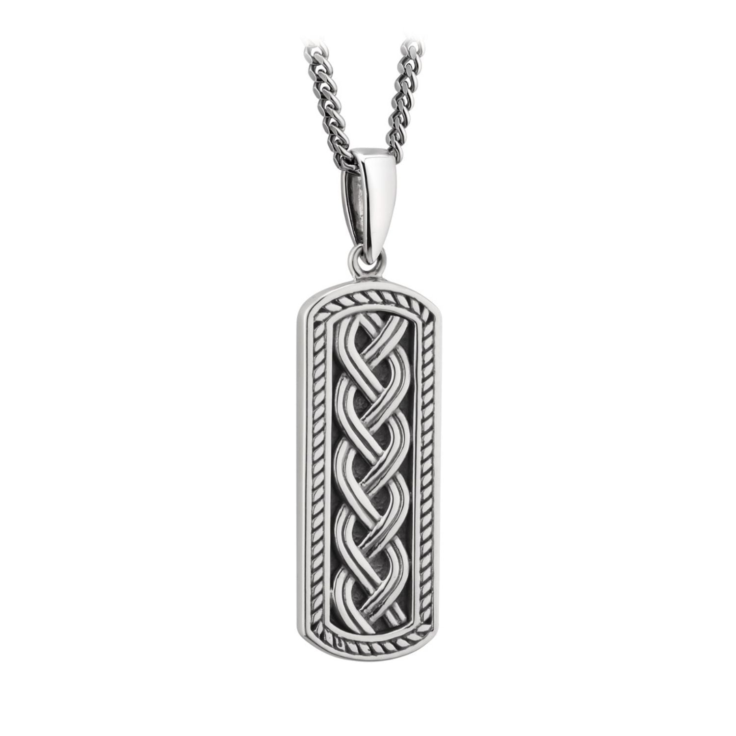 Handcrafted with care using high-quality sterling silver, the detailed Celtic weaves at the center of the oblong pendant draw inspiration from the historic art seen in the Book of Kells.